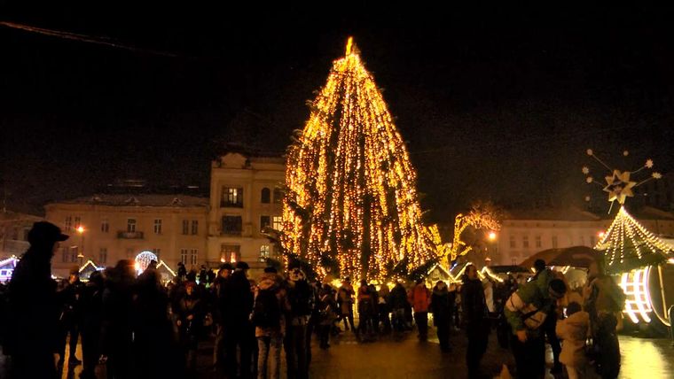 Тим часом хорова капела "Дударик" здивувала виконанням "Щедрика" у новій обробці. До слова, новорічну ялинку цьогоріч місто не купувало. Дерево, яке 50 років росло у приватному дворі, подарувала мешканка села Брюховичі, що поблизу Львова.