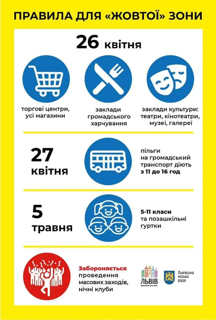 - З 26 квітня Львівщина перебуває у жовтій карантинній зоні.