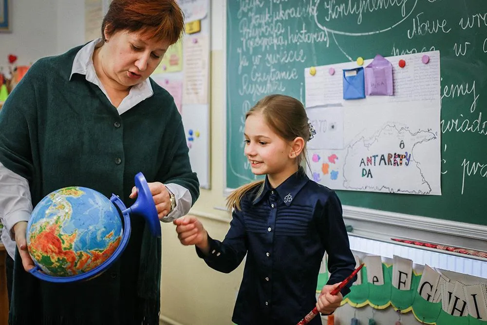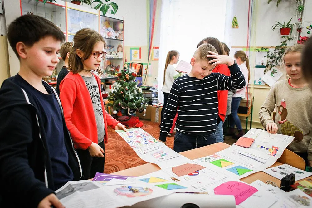 У класі пані Олени навчаються двадцять дев'ять діток. Їхня наука більше схожа на захопливу гру: працюють у командах, читають енциклопедії та пропонують вчительці свої ідеї.