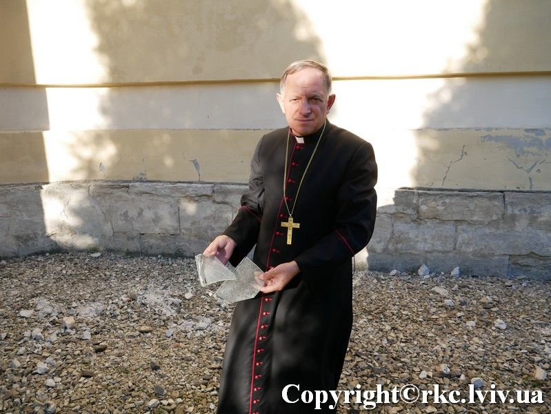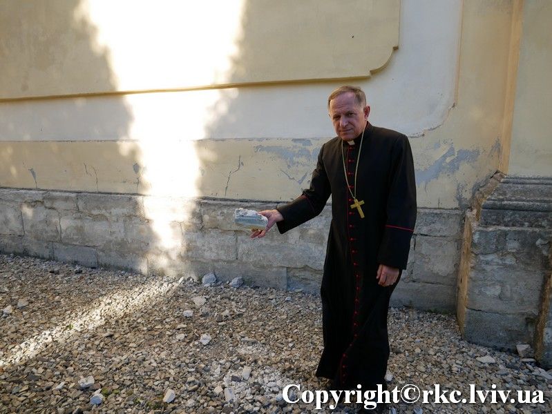 Архієпископ-митрополит РКЦ Мечислав Мокшицький відвідав храм після ракетних ударів окупанті.