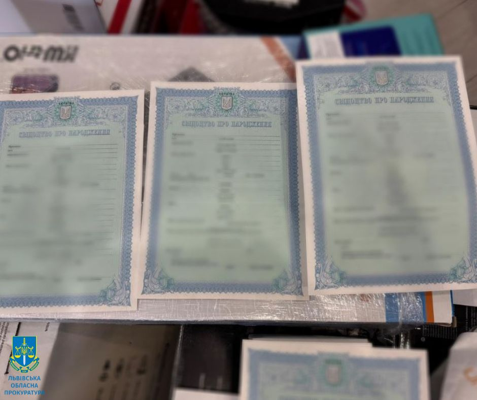 В межах кримінального провадження за результатами обшуків виявлено та вилучено понад 270 підроблених печаток підприємств, установ і організацій, бланки документів і свідоцтв про народження дітей, а також мобільні телефони й комп’ютерну техніку, яку використовували для їх виготовлення.