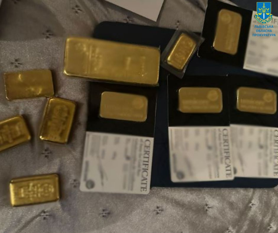 Крім того, у підозрюваної виявили близько 110 тисяч доларів готівкою і золоті злитки вагою 2,5 кілограма.