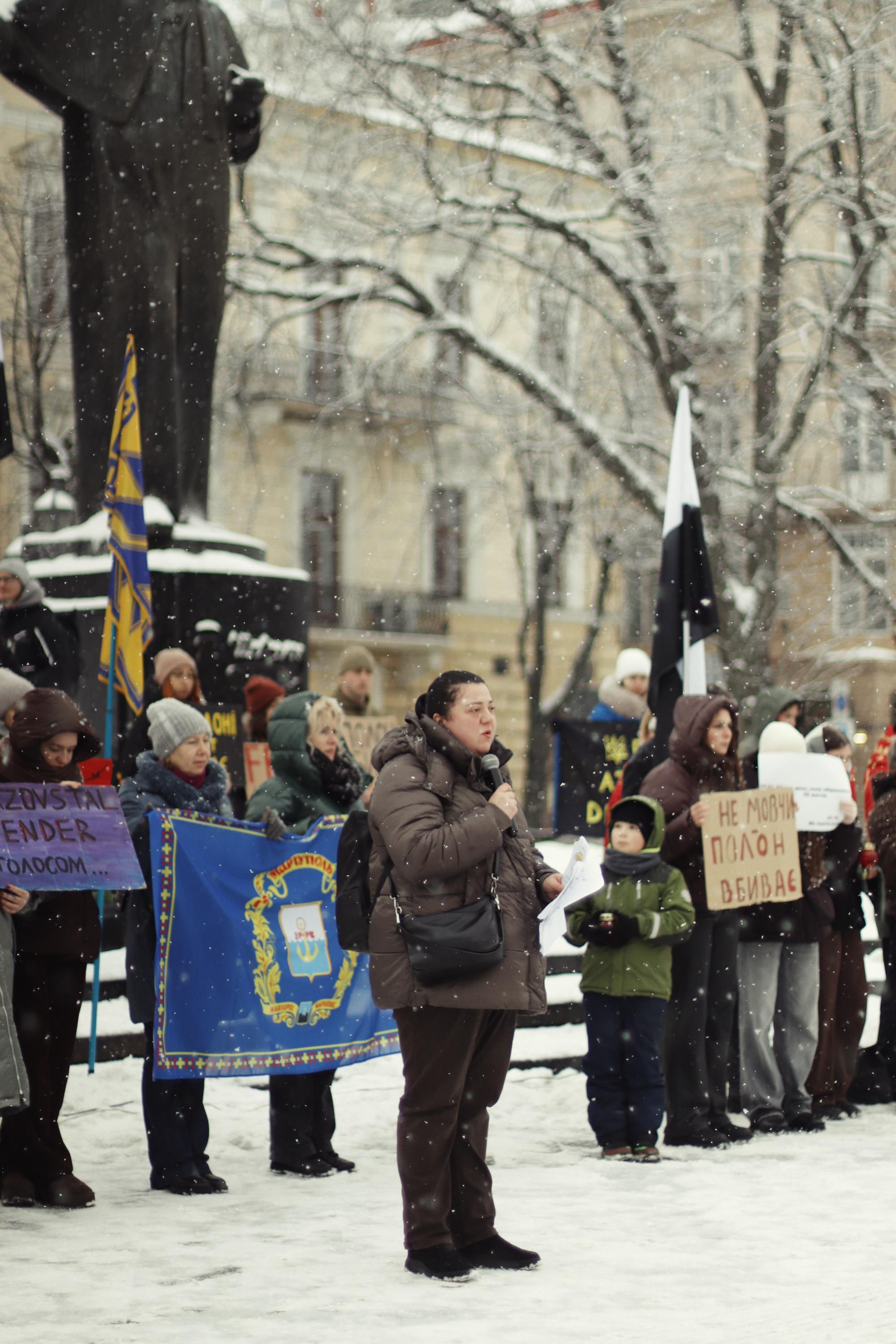 - На акції виступили представники родин загиблих, ветерани, та представники Уповноваженого Верховної Ради з прав людини, які закликали до активної підтримки та звільнення військовополонених.