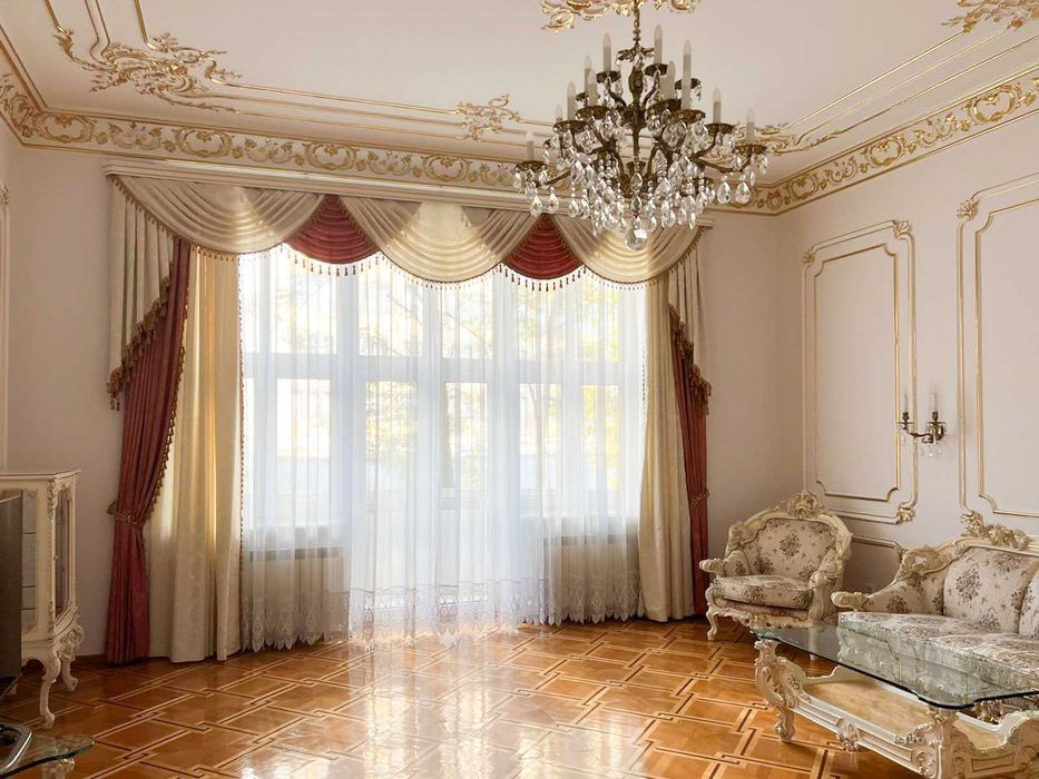 У квартирі зроблено ремонт за авторським проєктом у стилі бароко. Залишаються оригінальні італійські меблі, люстри, предмети декору та вмонтована побутова техніка. Є відеоспостереження та сигналізація. Підходить як для проживання, так і для бізнесу,