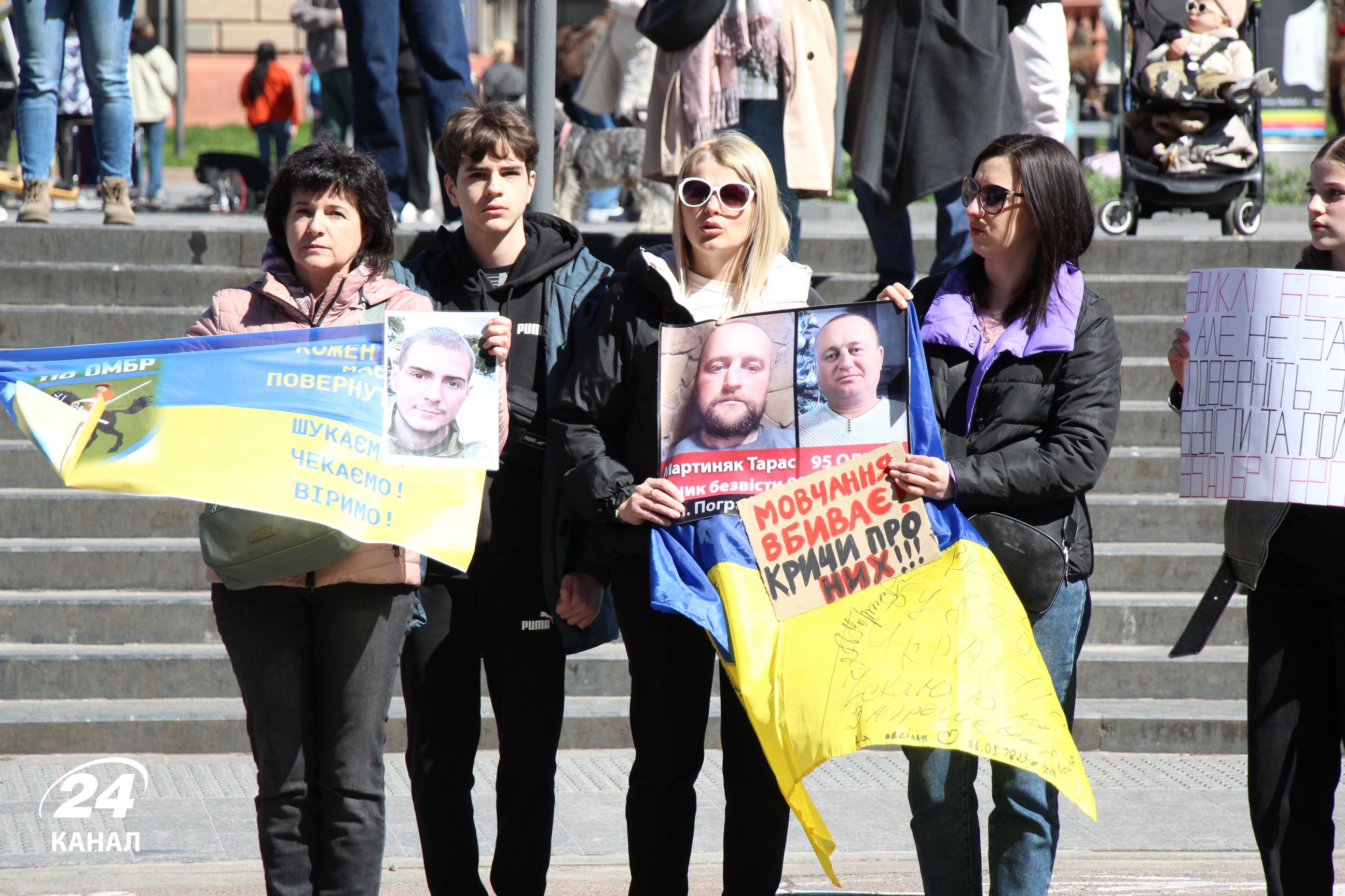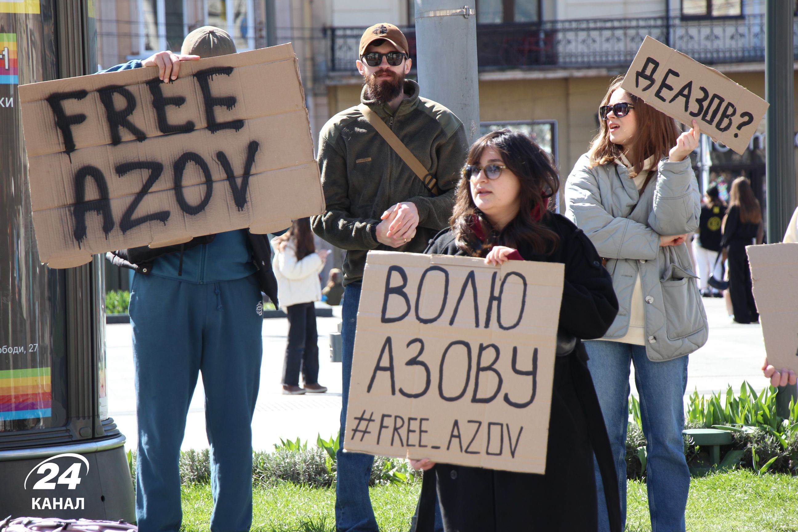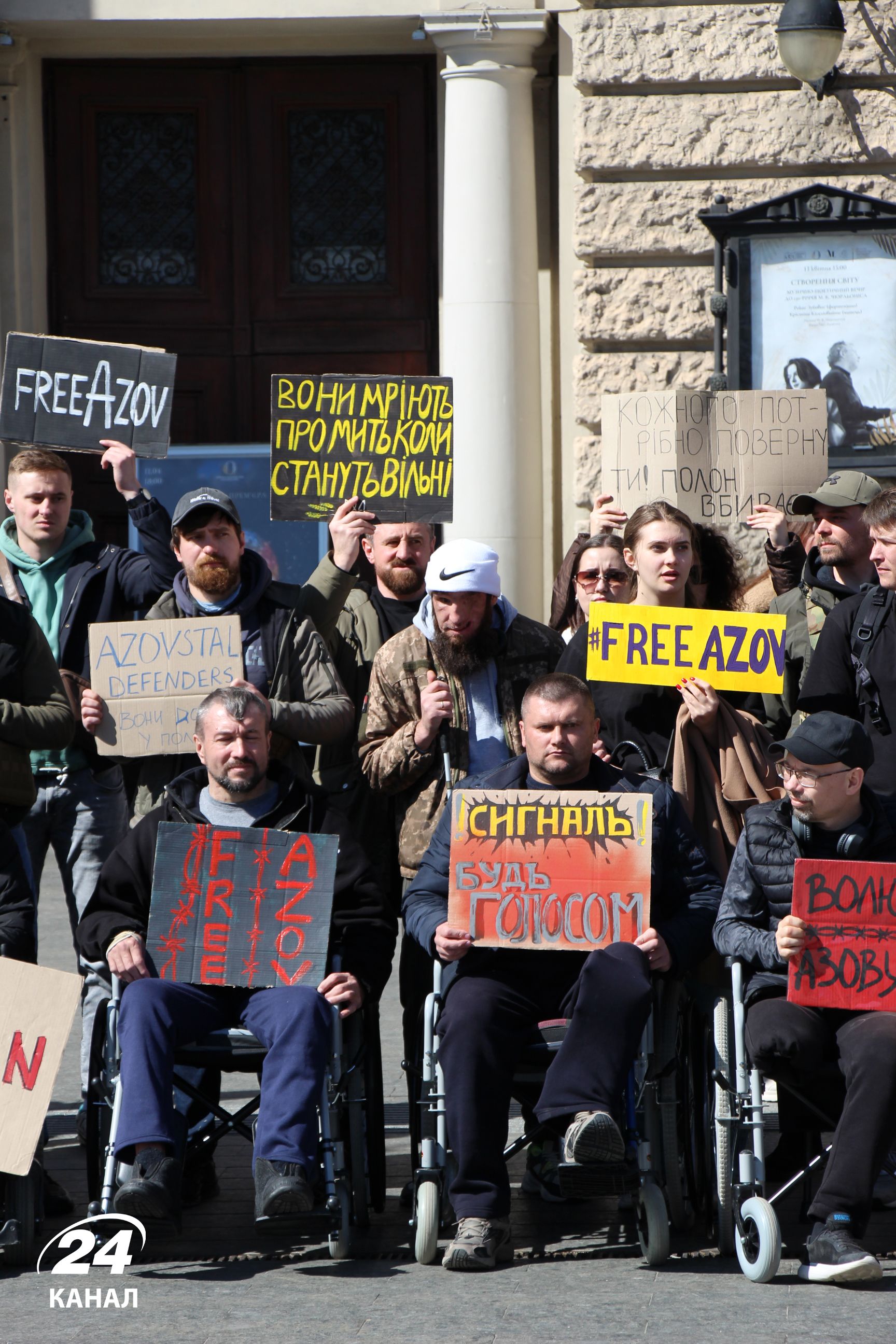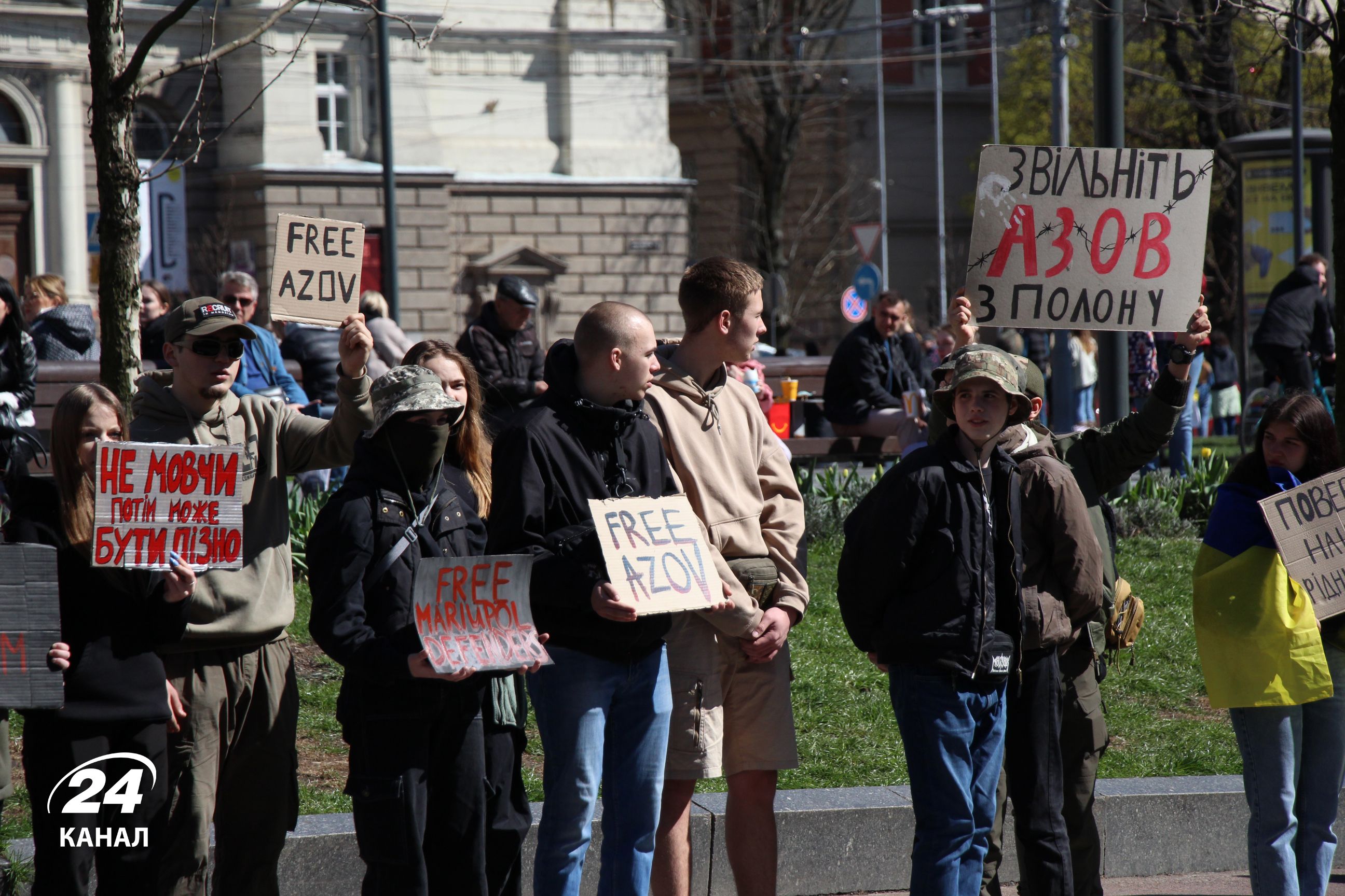 На численних плакатах було написано: "Волю захисникам Маріуполя", "Наші Герої мають бути вільними", "Я голос полонених – а ти", "В полоні немає весни" тощо.