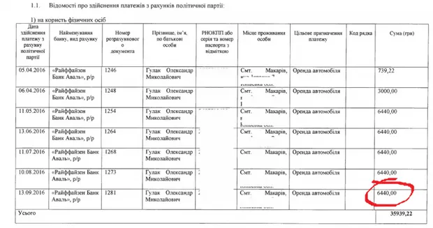 Вартість оренди броньованого Cadillac складає 6,5 тисяч гривень на місяць. Гроші за авто отримує радник Ляшка та помічник нардепа від "Радикальної партії" Олексія Ленського – Олександр Гулак.