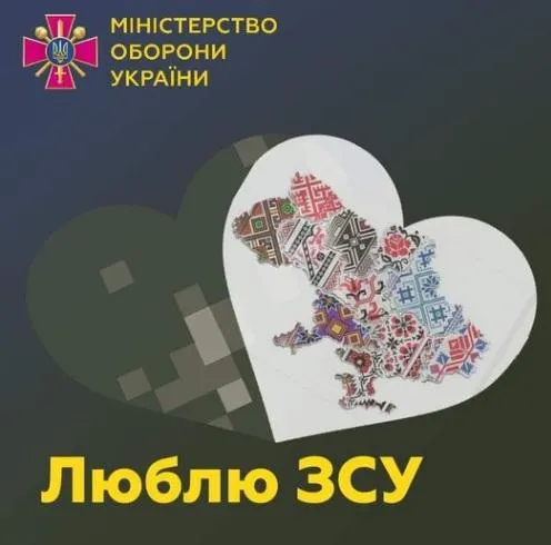 Вранці Міноборони поширило у фейсбуці фото, на якому зображена валентинка – у її центрі карта України, складена з традиційних елементів української вишивки. Також на ній є надпис: "Люблю ЗСУ".