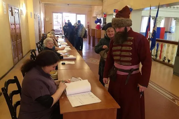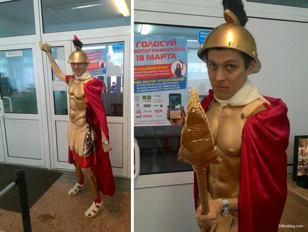 У Пскові на виборчу дільницю прийшов чоловік в костюмі стрільця.