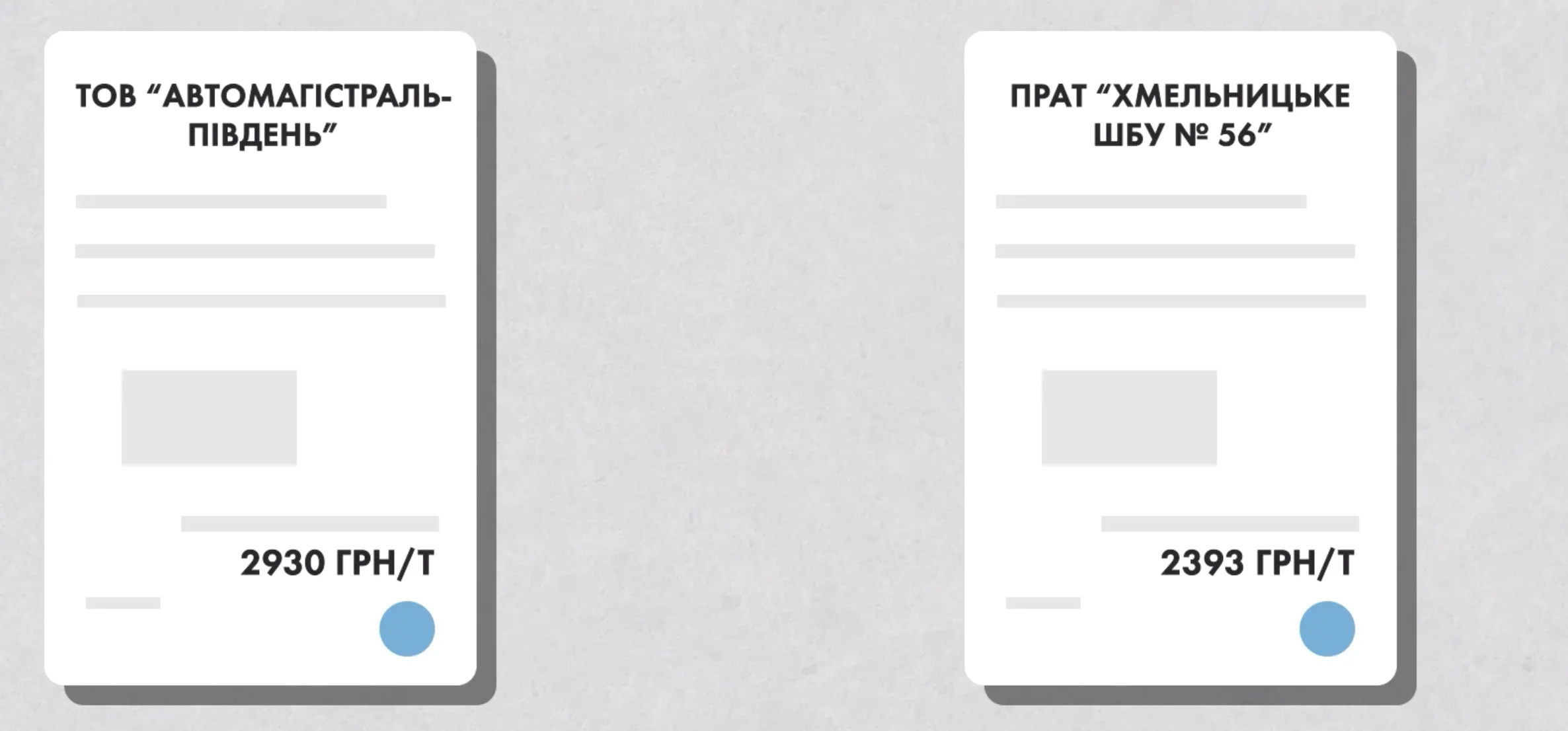 У кошторисах Укравтодору ціна за тонну такого бетону для компанії – майже 3 тисячі гривень. Хоча у січні 2020 року в документах хмельницької компанії ШБУ-56 ціна за такий же бетон – майже 2400 тисяч гривень за тонну.