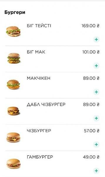 Маленька картопля фрі коштуватиме 40 гривень замість 26, а 4 шматочки чікен макнагетс – 57 гривень. Якщо раніше "БігТейсті" коштував 112 гривень, то зараз – 169 гривень.