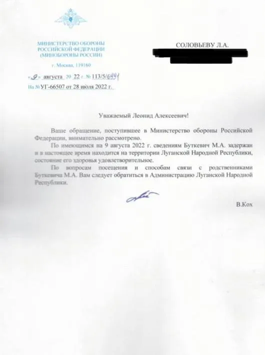 міноборони росії підтвердило, що український правозахисник Максим Буткевич перебуває на території квазіреспубліки "ЛНР". Стан здоров'я правозахисника "задовільний".