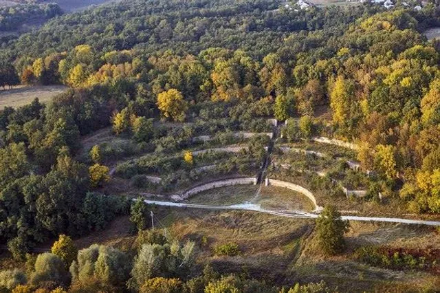 Тераси збудував поміщик Павло Харитоненко у 19 столітті. Мріяв вирощувати біля своєї садиби примхливі екзотичні сорти плодових рослин і шукав, як би то зреалізувати в умовах українського клімату. Вихід знайшли: на схилі балки побудували 6 терас, розташованих дугою і повернутих до сонця упродовж всього дня. Захищені яровим ландшафтом з одного боку і мальовничим берегом ставу з іншого і підкріплені дренажною системою, тераси отримали унікальний мікроклімат, де можна було вирощувати тропічні фрукти. До того ж форма і місце розташування терас створили унікальну акустику: там найтихіші звуки можна почути на відстані 60 метрів. Шелест листя, спів птахів перетворюються на мелодію. А у вітряну погоду тут чути незвичайний переливчастий звук.