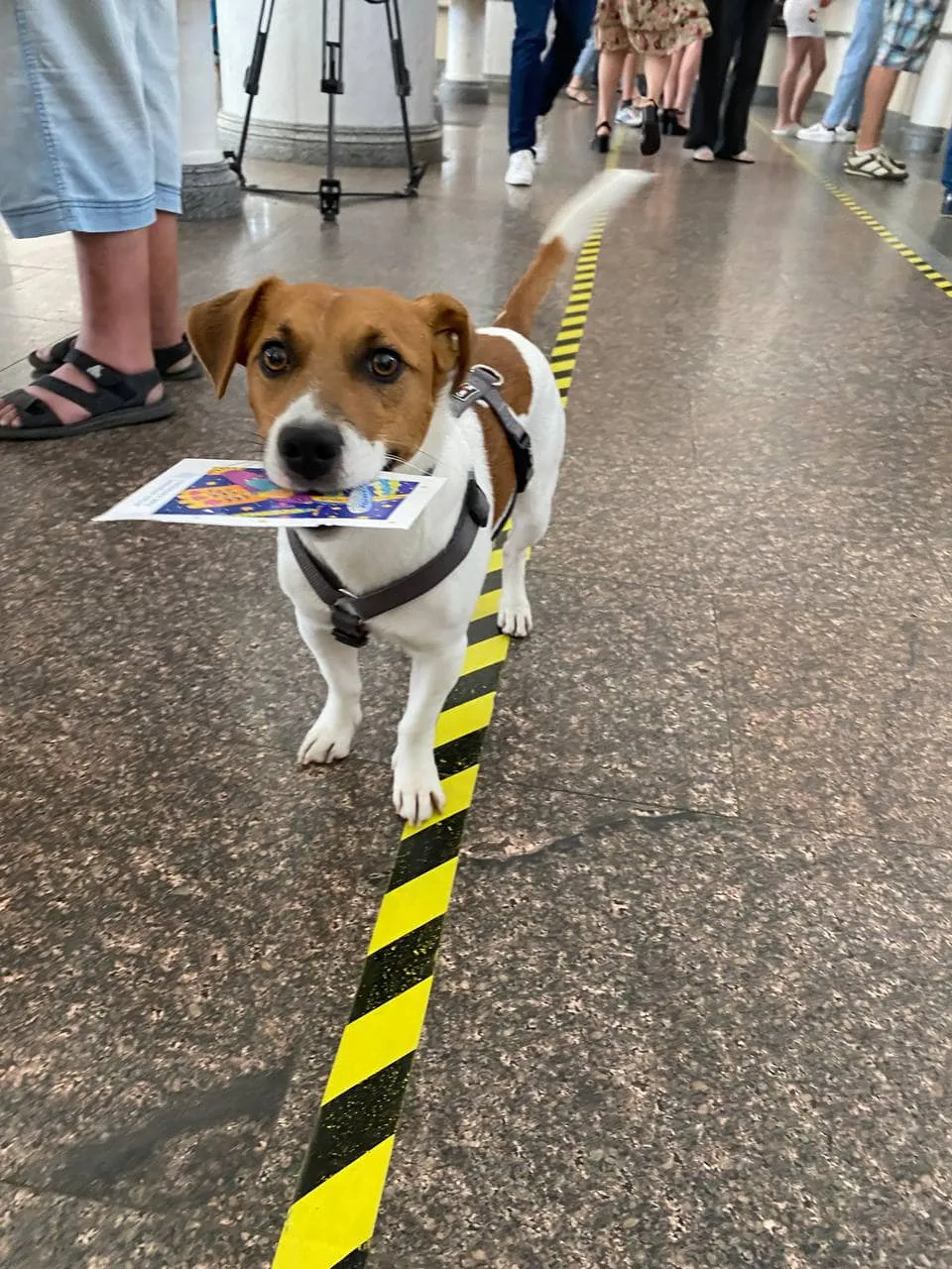 Пес Патрон "купує" нові марки / Фото фейсбук Ігоря Смелянського