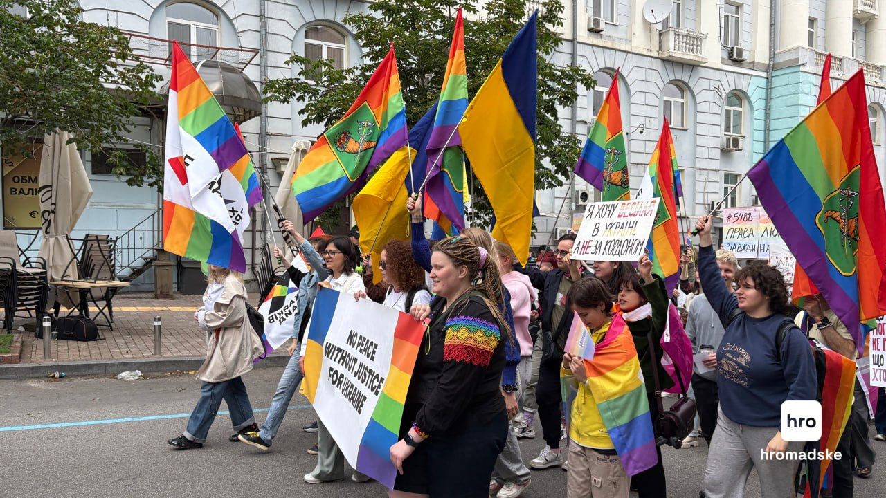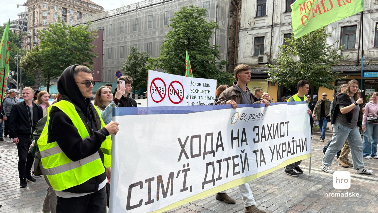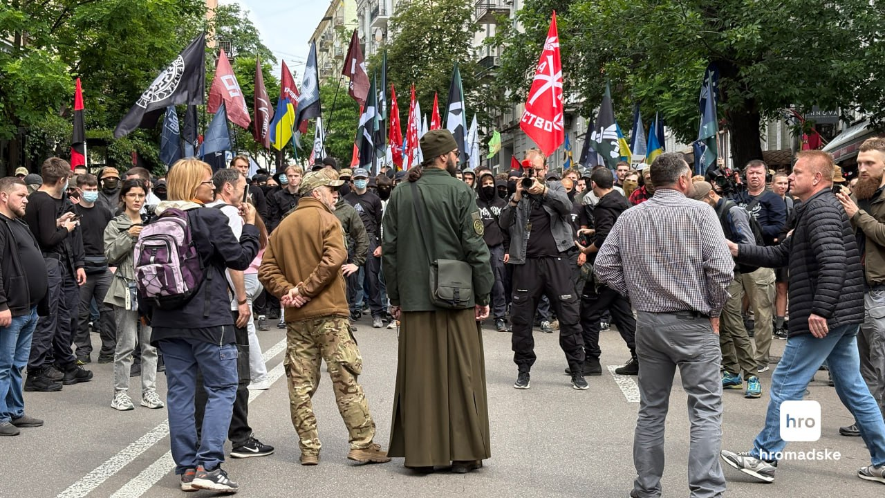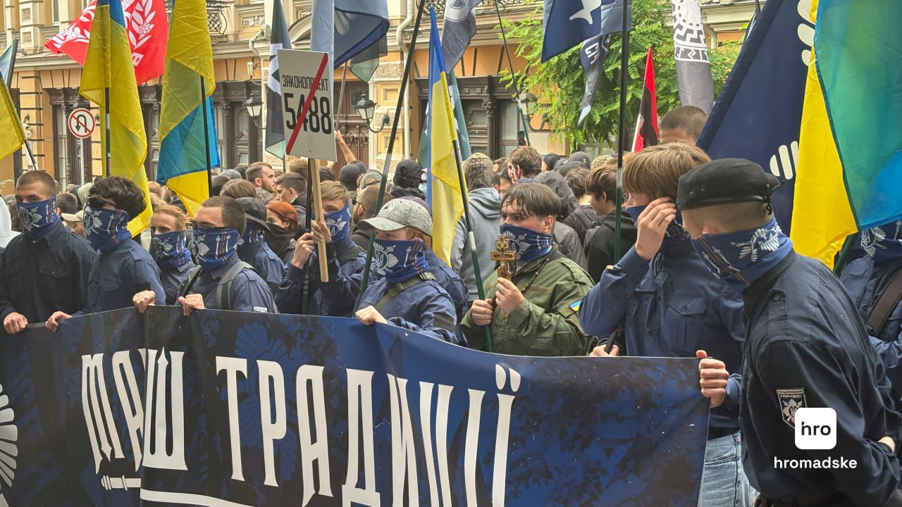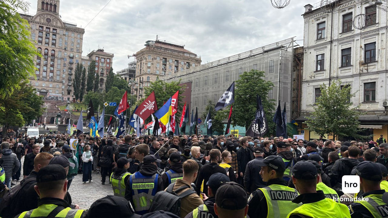 Водночас представники "Правої молоді" та "Карпатської січі" пройшлися з Майдану Незалежності у бік Прайду із закликами не ухвалювати відповідні законопроєкти задля підтримки традиційних цінностей.