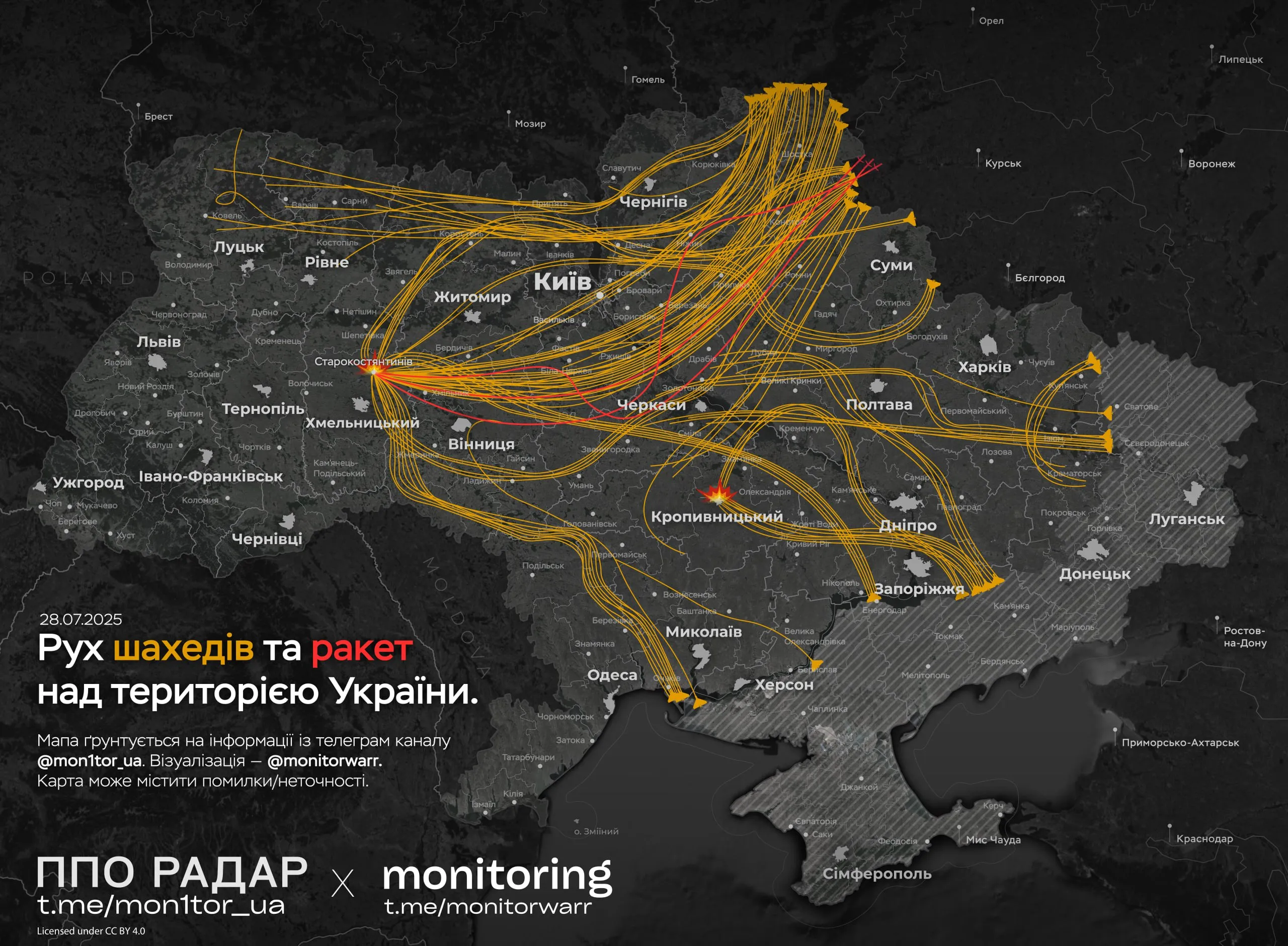 Як рухалися дрони та ракети під час атаки 28 липня?