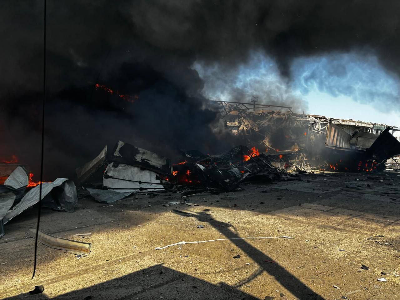 - Солом'янський район. Уламків ракети спричинили пошкодження 2 поверхів бізнес-центру. Фіксують руйнування на площі 1500 метрів квадратних. Спалахнула пожежа на площі 50 метрів квадратних.