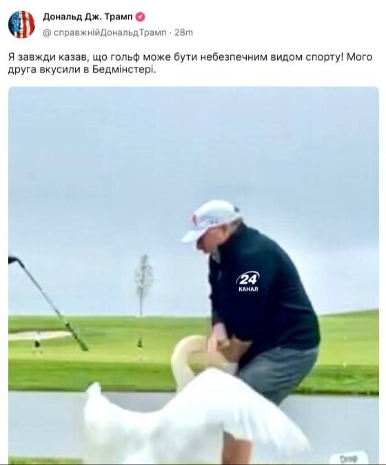 - Трамп поділився цією історією в соцмережі Truth Social, зазначивши, що "гольф може бути небезпечним видом спорту".
