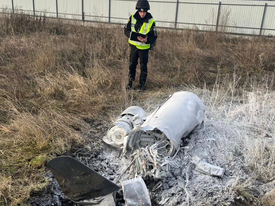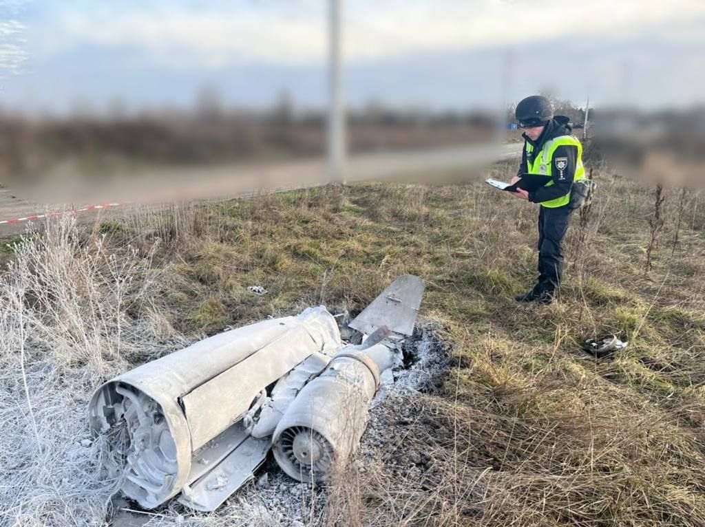 Як повідомив начальник Головного управління Національної поліції в Київській області Андрій Нєбитов, частини крилатих ракет ворога знайшли на полях поряд із населеними пунктами. Він подякував нашим ППО за відмінну роботу.