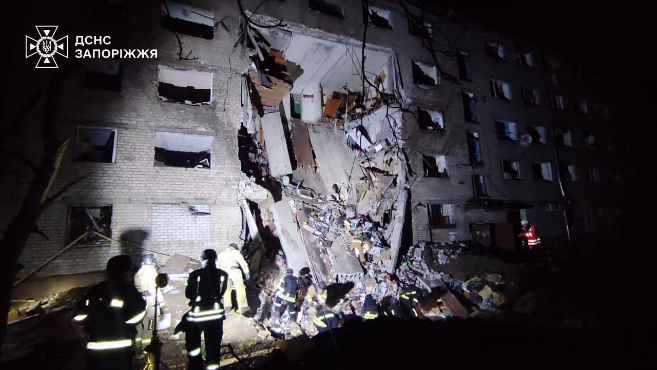 Як додав Володимир Зеленський, у Запоріжжі пошкоджено житлові будинки і зруйновано кілька поверхів гуртожитку. Відомо про десятки поранених, серед яких є діти. Також дві людини загинули.