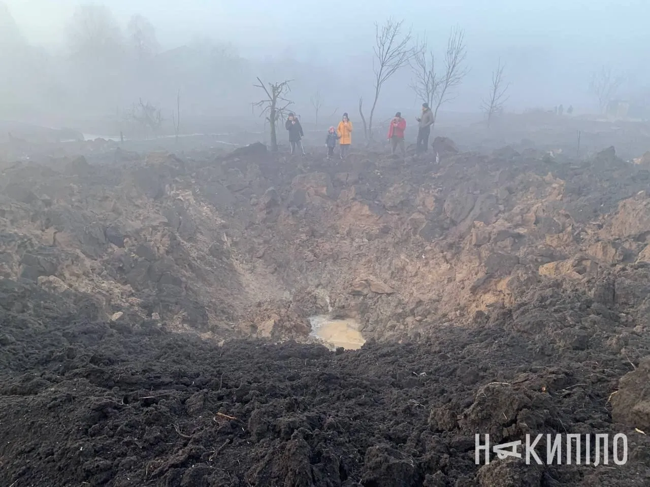 На оприлюднених кадрах можна побачити глибоку вирву, яка утворилась на Харківщині після ракетної атаки окупантів.