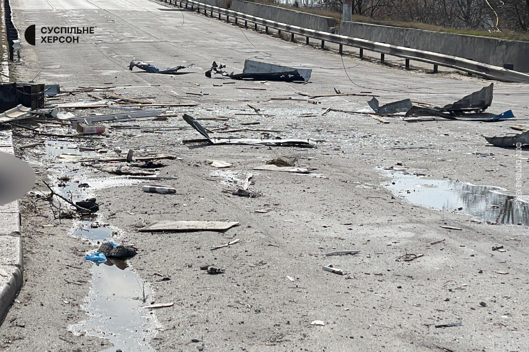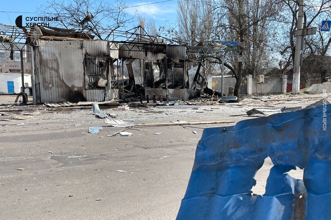 "На місці згарища кілька хвилин тому була зупинка громадського транспорту", – зазначили у Херсонській ОВА.