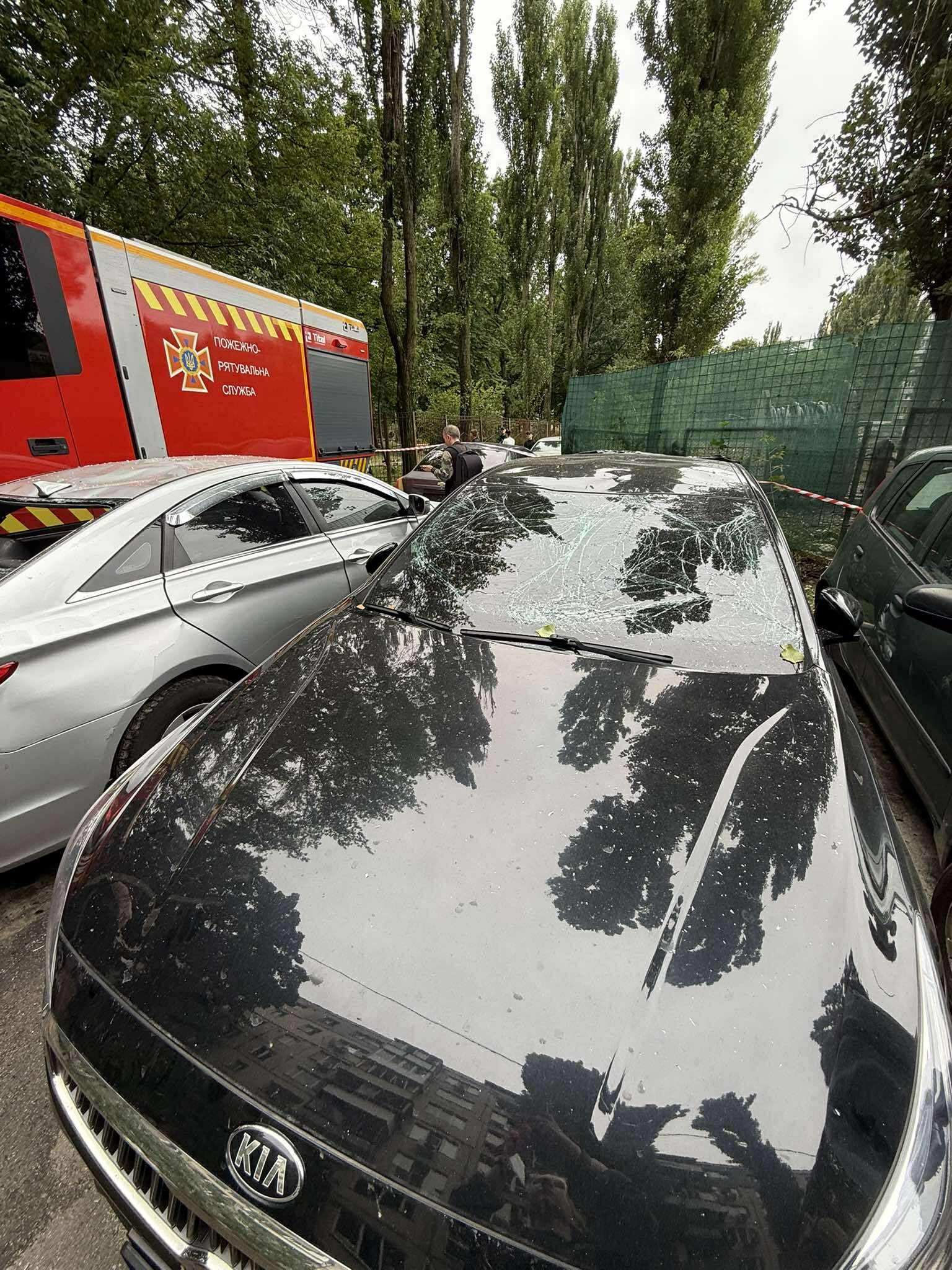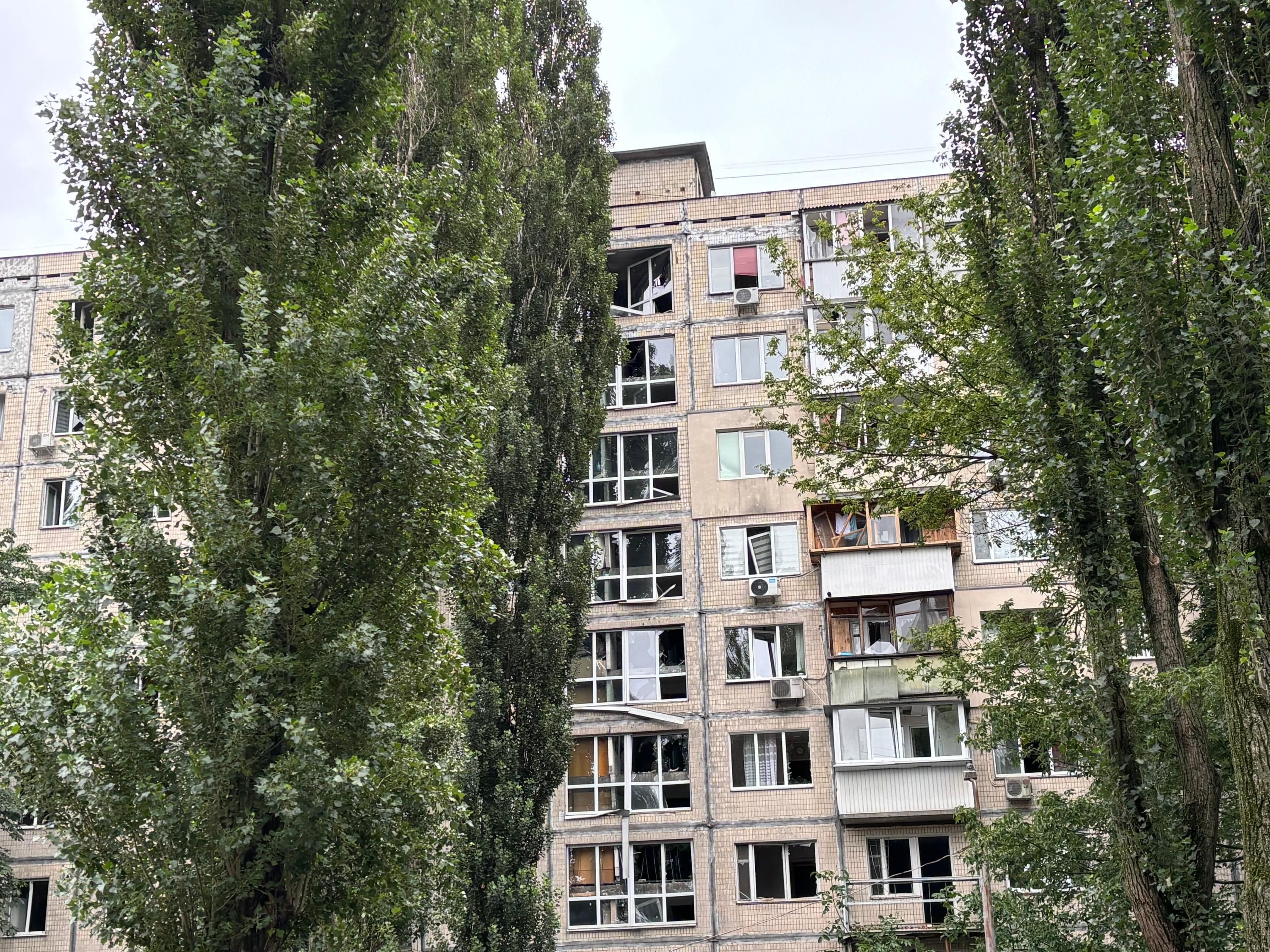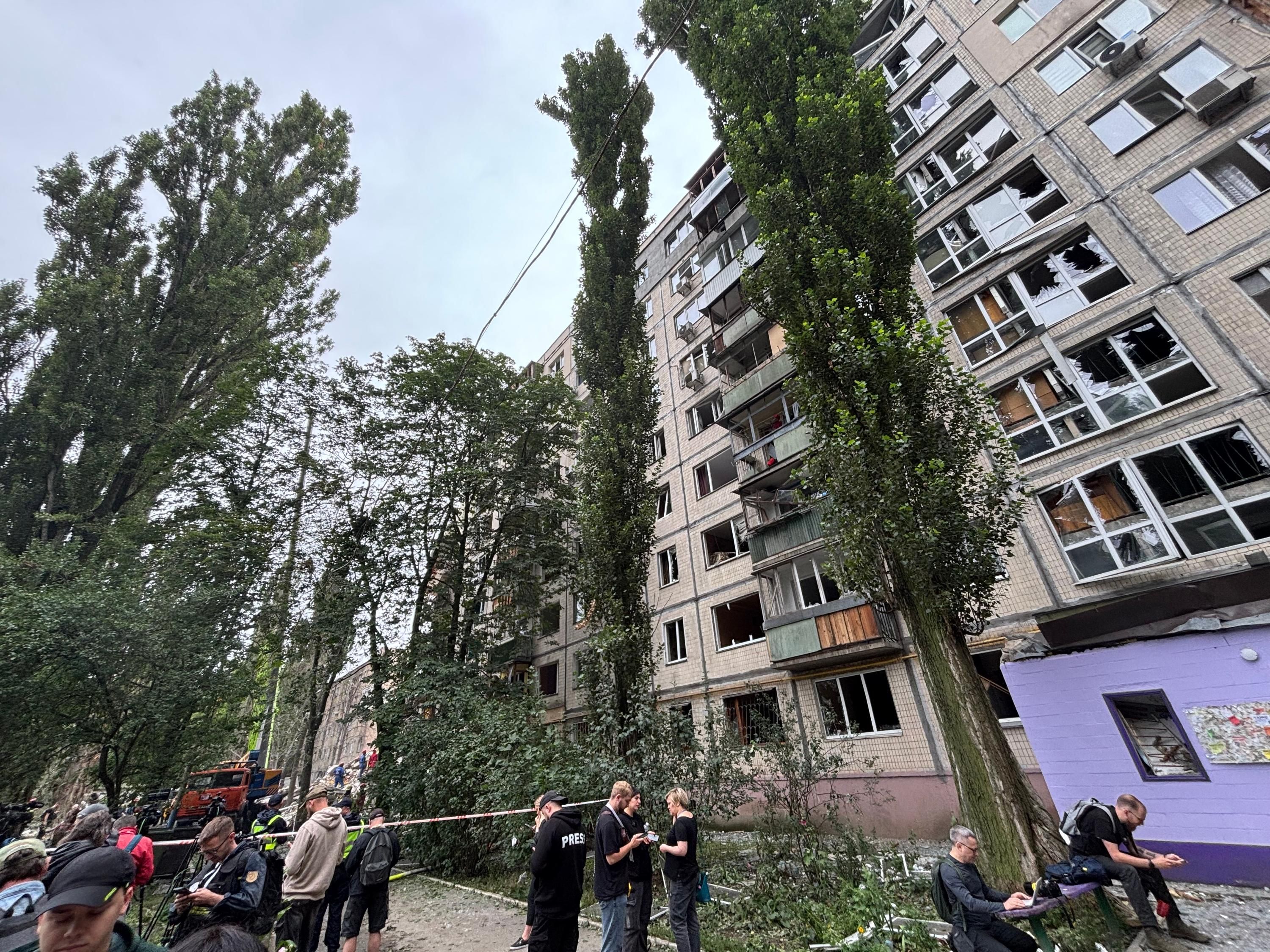 За словами голови МВС Ігоря Клименка, влучання ракети в багатоквартирний будинок у Святошинському районі було прямим – у районі 5-го поверху. Траєкторію її падіння можна відстежити по обгорілому листю дерев.
