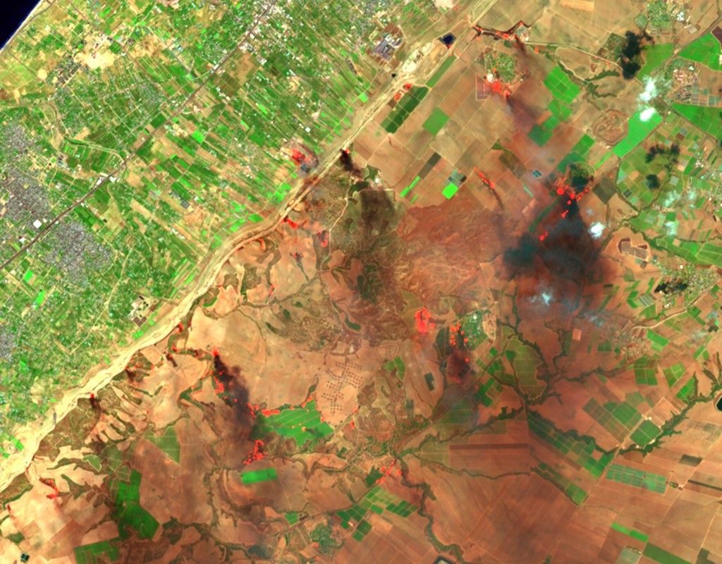 У перші години війни ХАМАС масовано обстрілював центр і південь Ізраїлю. Європейське космічне агентство поділилося супутниковими знімками, які були зроблені приблизно через п'ять годин після початку нападу бойовиків.