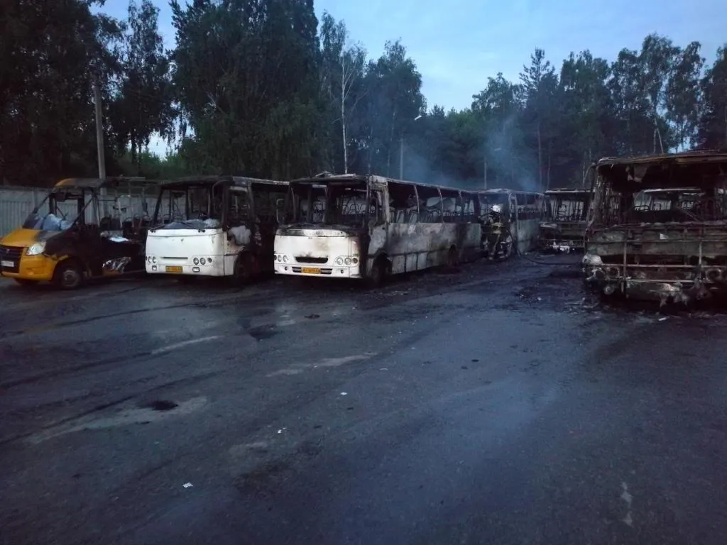 Внаслідок пожежі знищено 10 маршрутних автобусів "Богдан", повідомили у ДСНС.
