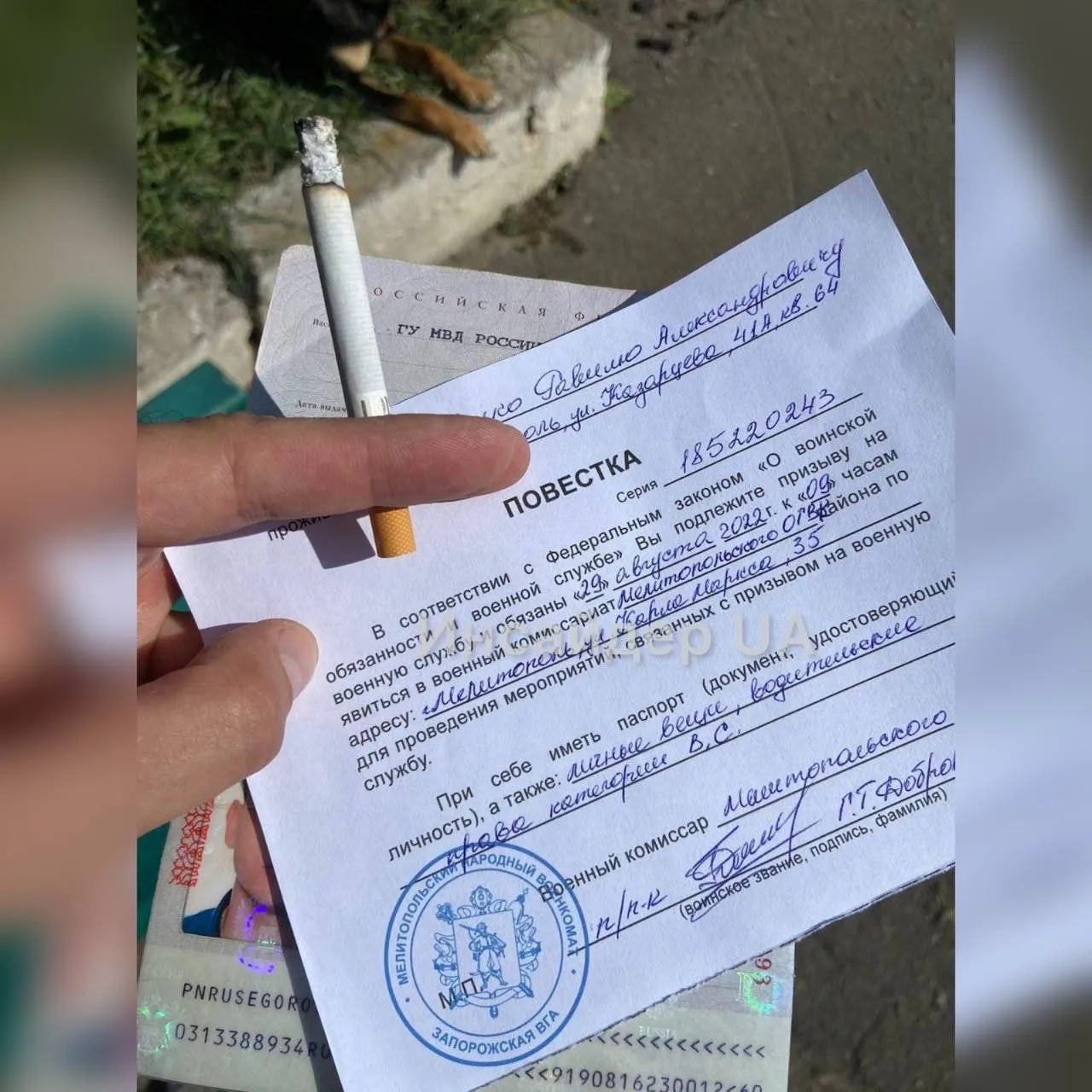 Мешканець Мелітополя отримав повістку / Фото з телеграму "Інсайдер UA"