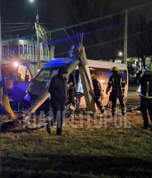 У Мелітополі ввечері 11 січня маршрутка на великій швидкості влетіла у стовп.