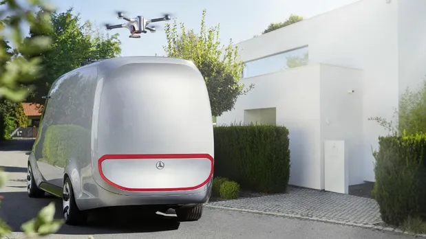 Крім того, фургон обладнаний спеціальними літаючими дронами, встановленими на даху. За допомогою квадрокоптера можна переправляти невеликі предмети повітрям, що також прискорить процес доставки в житлових кварталах з щільною забудовою. Коптери зможуть залишати посилки на території замовників, навіть якщо їх немає вдома.