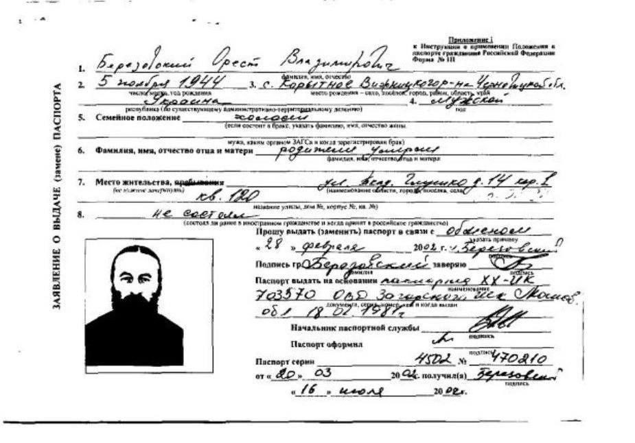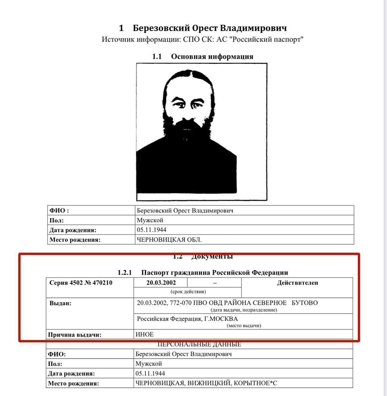 Джерела 24 Каналу кажуть, що дані з російської паспортної системи спростовують заяви УПЦ МП, де переконують, що нібито російського паспорта в Ореста Березовського, митрополита УПЦ МП Онуфрія, немає. Там чітко зазначено, що документ "действителен".