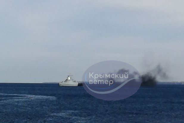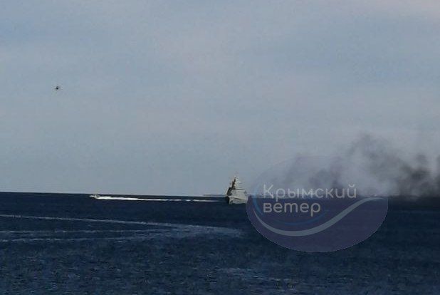 Водночас на фото, які отримали місцеві канали, корабель виглядає цілим. Пишуть, що він міг випустити чорний дим – шлейф – і цей момент збігся з підводним вибухом, який дійсно стався внаслідок навчань.