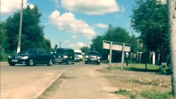 На кадрах можна побачити кортеж, який складається з декількох десятків автівок різних марок. Його супроводжують автомобілі поліції.