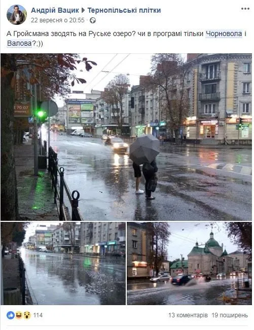 Мешканці міста Тернопіль різко розкритикували "показушну" діяльність місцевої влади з приводу візиту прем’єр-міністра України Володимира Гройсмана. Авральні ремонтні роботи на деяких вулицях міста проводили навіть увечері та в дощ.