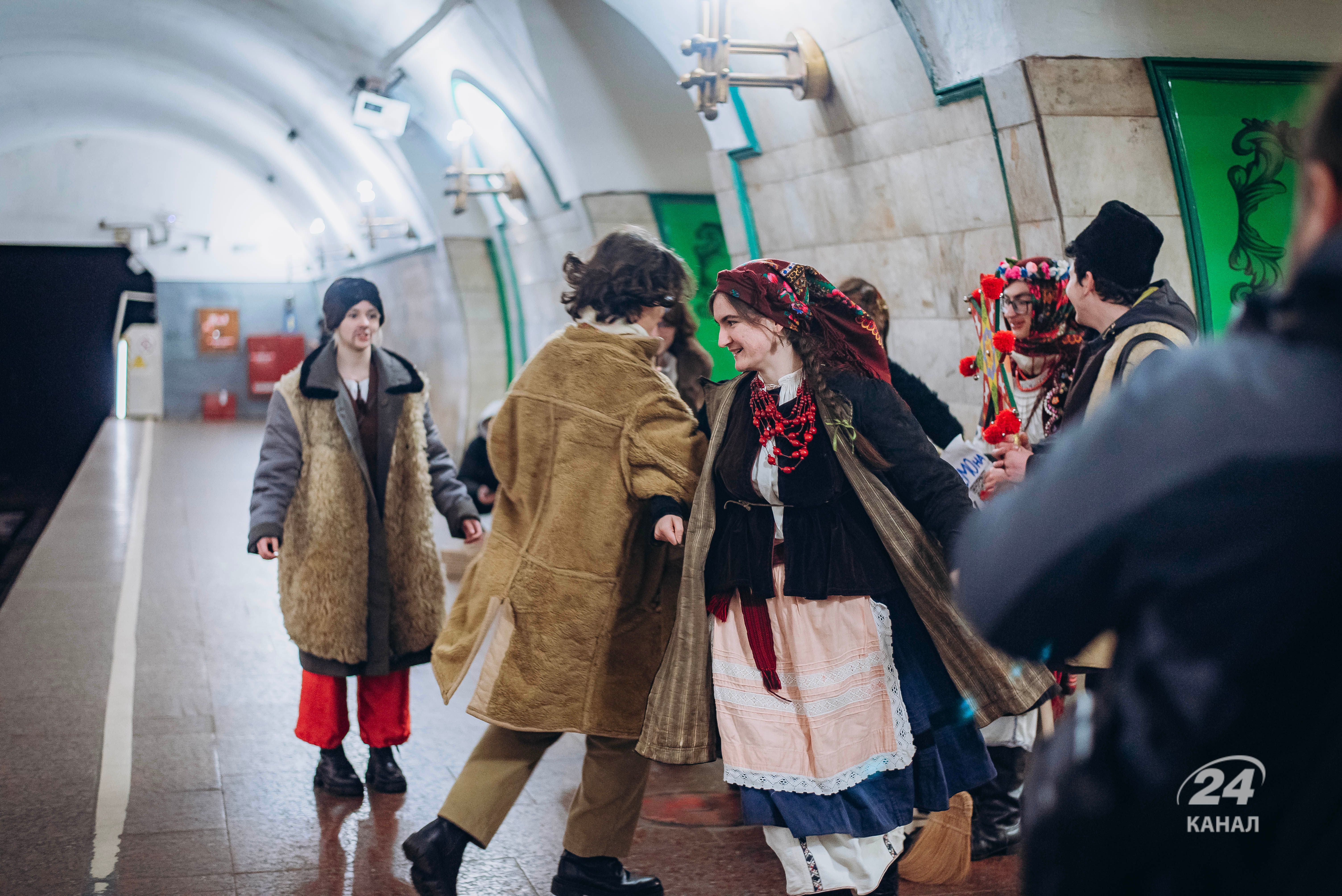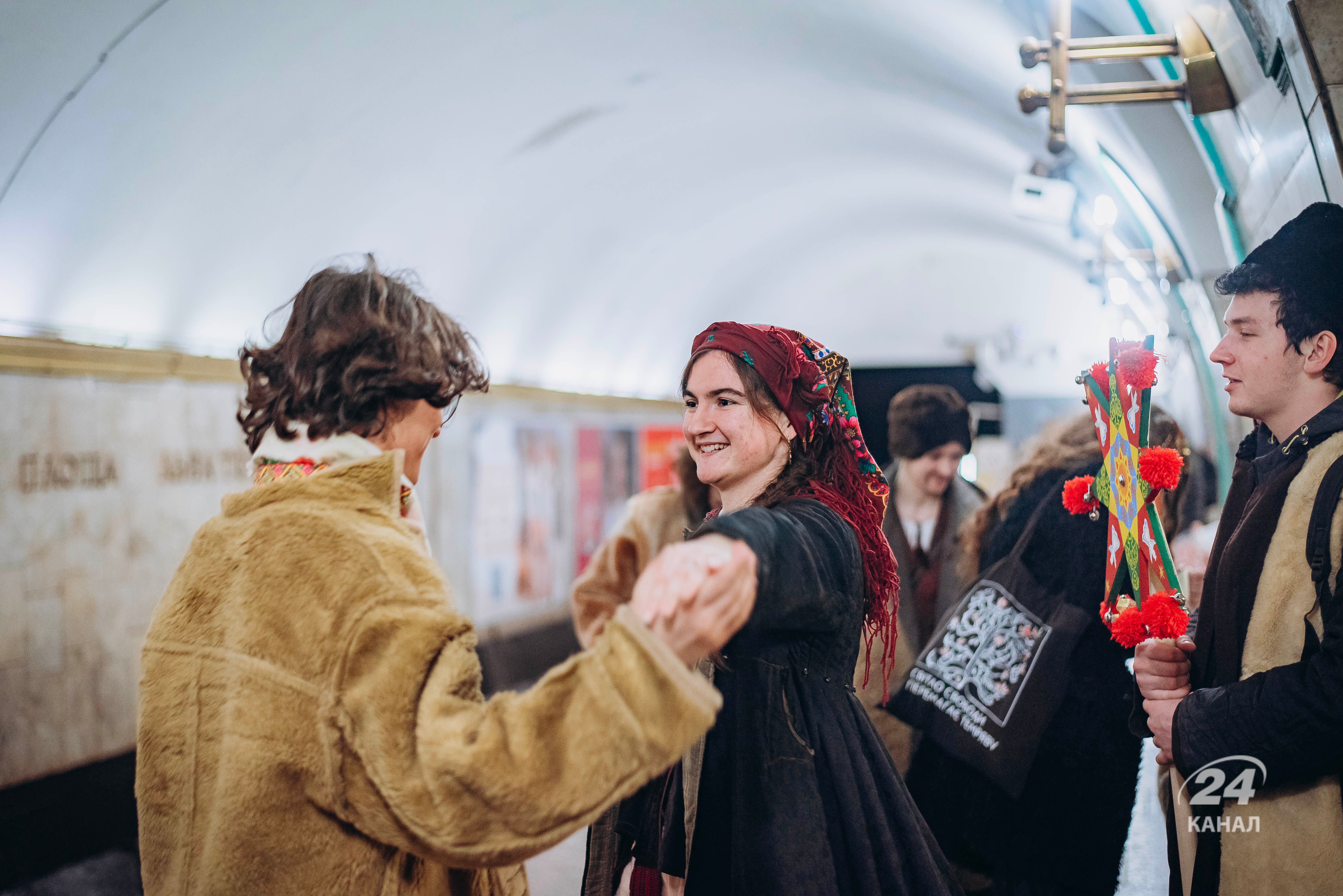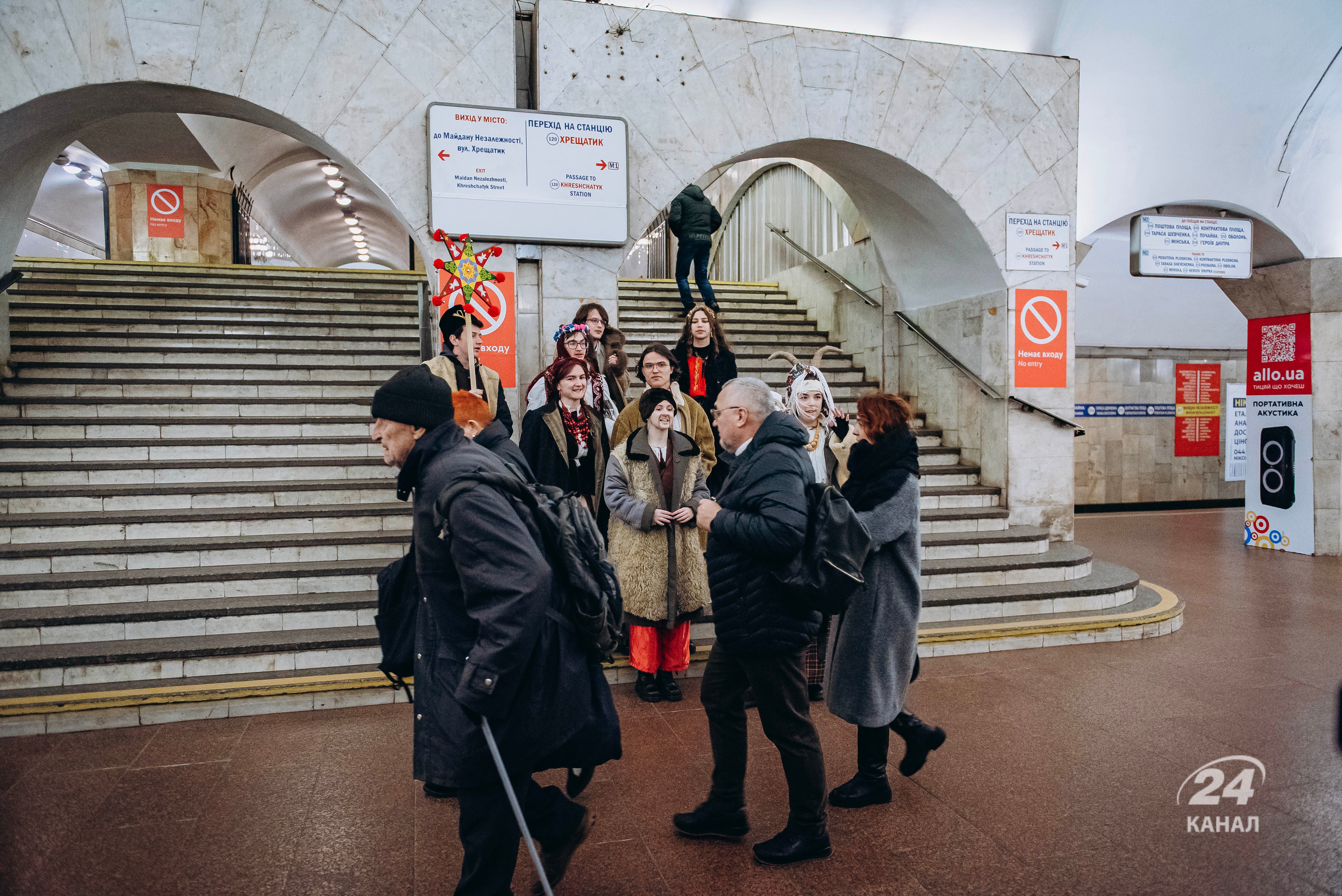 Кореспондентка 24 Каналу також зустріла щедрувальників у київському метрополітені. Кадри, які переносять у святкову атмосферу, далі у матеріалі.