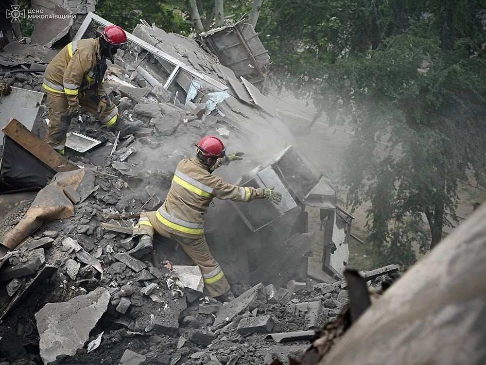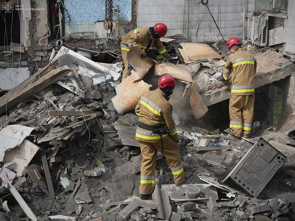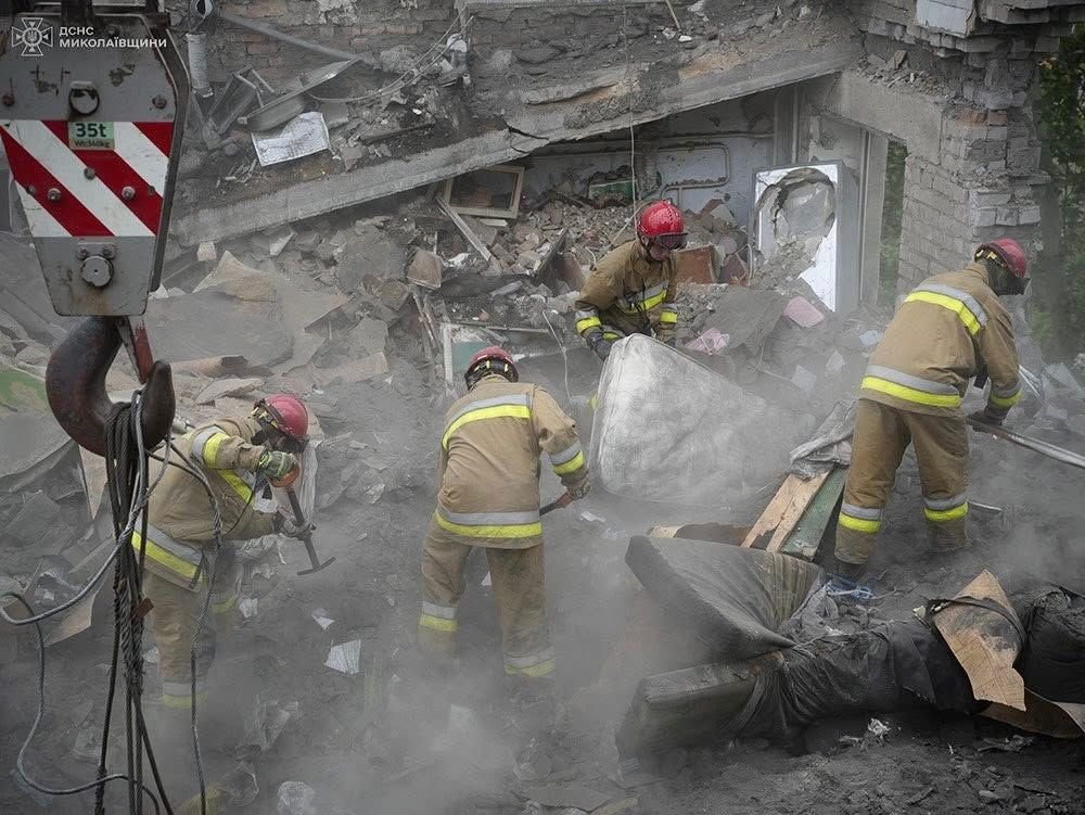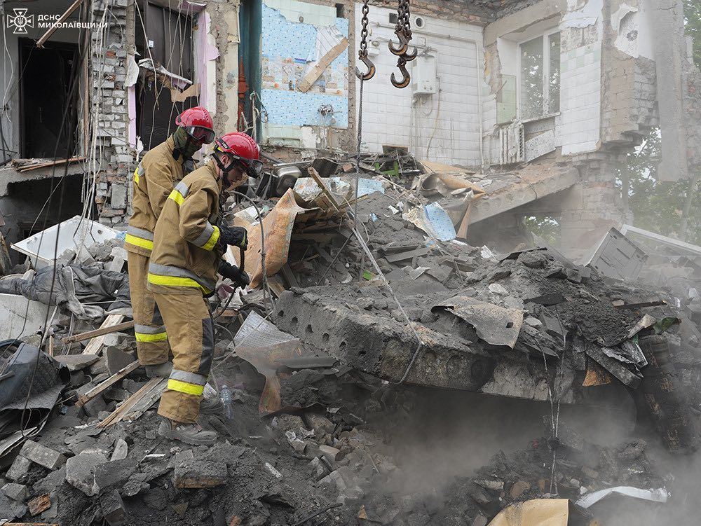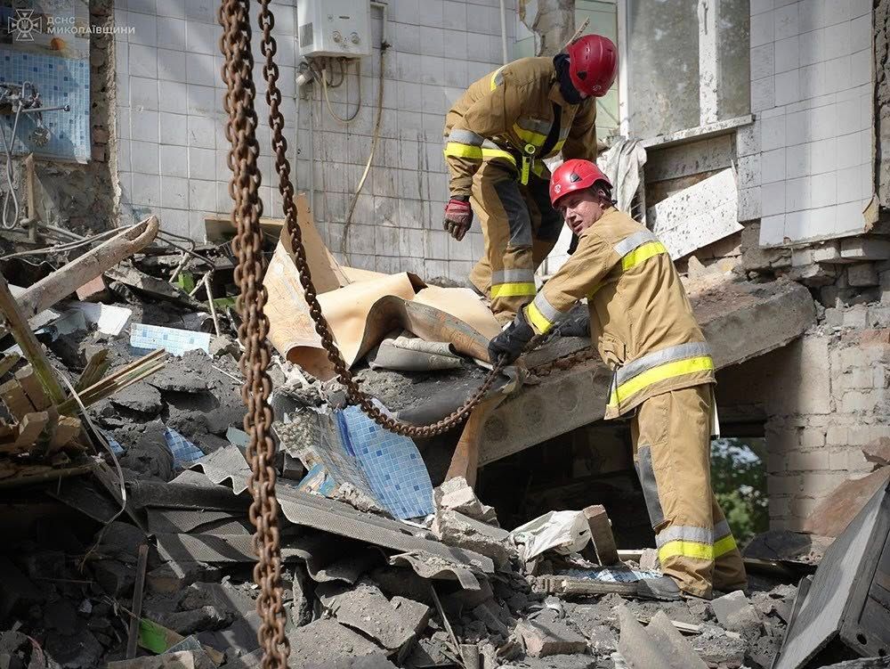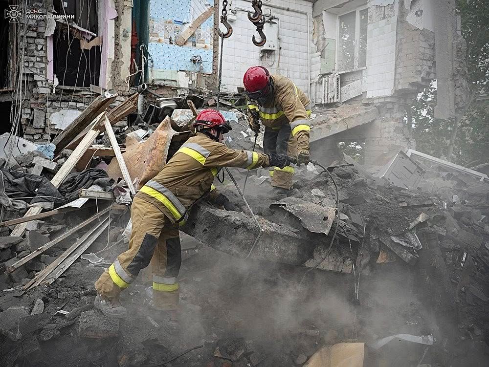 У службі також розповіли, що станом на 20:00 роботи з ліквідації наслідків нічного удару БпЛА по п'ятиповерхівці у Миколаєві тривають.