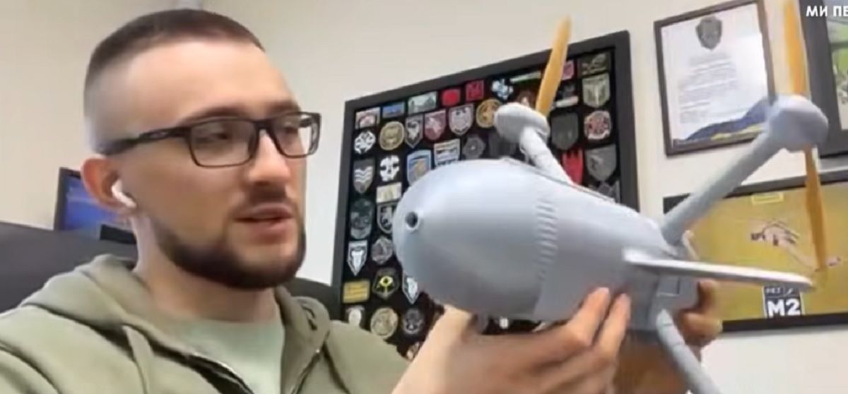 Сергій Стерненко демонструє дрон-перехоплювач Sting / скриншот відео