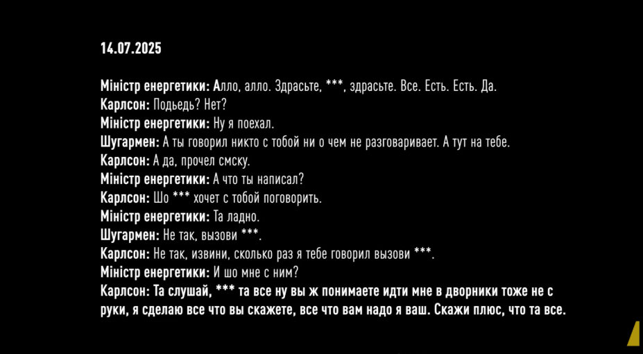 НАБУ викрило нові деталі корупційної схеми. Стало відомо, що "Карлсон" був керівником злочинного угрупування та контролював роботу "пральні", де відмивались одержані кошти. Під цим іменем у справі, ймовірно, фігурував Тимур Міндіч. Наглядова рада АТ НАЕК "Енергоатом" заявила, що ставиться серйозно до нещодавніх звинувачень у корупції, пов'язаних із працівниками Енергоатому. У компанії скличуть спеціальне засідання, щоб всебічно оцінити ситуацію та визначити відповідні дії. Це включатиме: Слідчий НАБУ Руслан Магамедрасулов брав участь у розслідуванні корупції в енергетичному секторі. Відомо, що Магамедрасулов очолює регіональний відділ НАБУ. Улітку СБУ повідомила йому про підозру у злочинах проти національної безпеки. Після масових протестів і критики з боку Заходу парламент відновив повноваження антикорупційних органів. Руслан Магамедрасулов і його 65-річний батько досі перебувають під арештом. Президент Зеленський підкреслив необхідність розслідувань та покарань за корупцію в енергетиці. Він закликав урядовців співпрацювати з антикорупційними органами. Енергоатом забезпечує Україні найбільшу частку енергогенерації зараз. Чистота в компанії – це пріоритет. Енергетика, кожна галузь. Кожен, хто будував схеми, повинен отримати чітку процесуальну відповідь. Вироки мають бути. І урядовці повинні працювати разом із НАБУ, разом із правоохоронними органами, і так працювати, як це потрібно для результату, НАБУ викрило офіс у центрі Києва, який належав родині екснардепа Андрія Деркача. У ньому легалізовували незаконно отримані гроші – близько 100 мільйонів доларів. Фігуранти справи вели "чорну бухгалтерію" та отримували оплату відсотками від проведених сум. В офісі Енергоатому проводяться слідчі дії в межах антикорупційної операції. Компанія буде співпрацювати зі слідством та надавати правоохоронцям всі необхідні матеріали. У Спеціалізованій антикорупційній прокуратурі створили комісію для проведення службового розслідування щодо корупції в енергетичному секторі. Вона стосується можливого витоку даних досудового розслідування. Отримані результати можуть стати підставою для адміністративних або процесуальних рішень. Офіс Президента України підтримує розслідування НАБУ та САП щодо корупції в енергетиці. Там кажуть, що винні обов'язково повинні отримати покарання. Радник президента з питань комунікацій Дмитро Литвин зазначив, що якщо є звинувачення, тоді мають бути підозри та інші процесуальні дії. Головним видом діяльності злочинної організації було отримання хабарів від партнерів Енергоатому – від 10% до 15% від вартості контрактів. Постачальників змушували платити "відкати", щоб уникнути блокування платежів за їхні послуги чи товари або не втратити статус постачальника. Цю схему називали "шлагбаумом". Керівник угруповання залучив до схеми колишнього заступника голови Фонду держмайна (який пізніше став радником міністра енергетики) та колишнього правоохоронця, який обіймав посаду директора з безпеки в компанії. Вони використовували свої зв'язки в міністерстві та Енергоатомі, щоб контролювати призначення на посади, закупівлі й фінансові потоки. У результаті підприємством із доходом понад 200 мільярдів гривень фактично керували не офіційні посадовці, а сторонні люди, які не мали формальних повноважень, але 