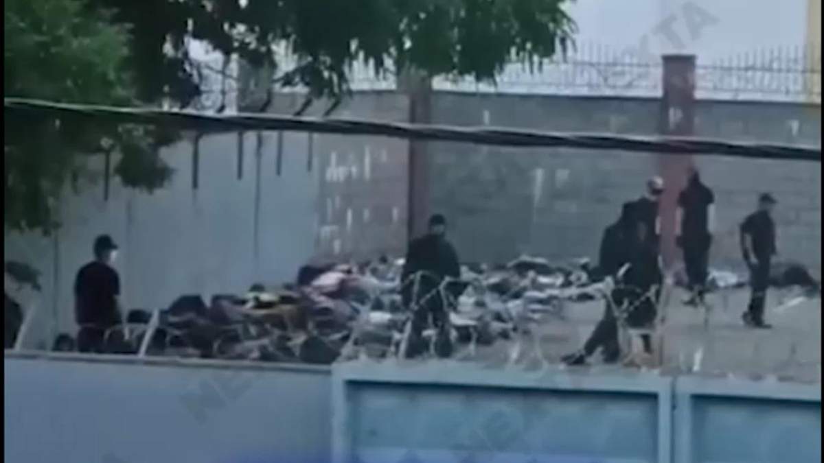 Відповідне відео оприлюднив телеграм-канал NEXTA. На ньому дві жінки знімають "краєвид" з вікна: на території Октябрського РУВС люди лежать просто неба на землі.