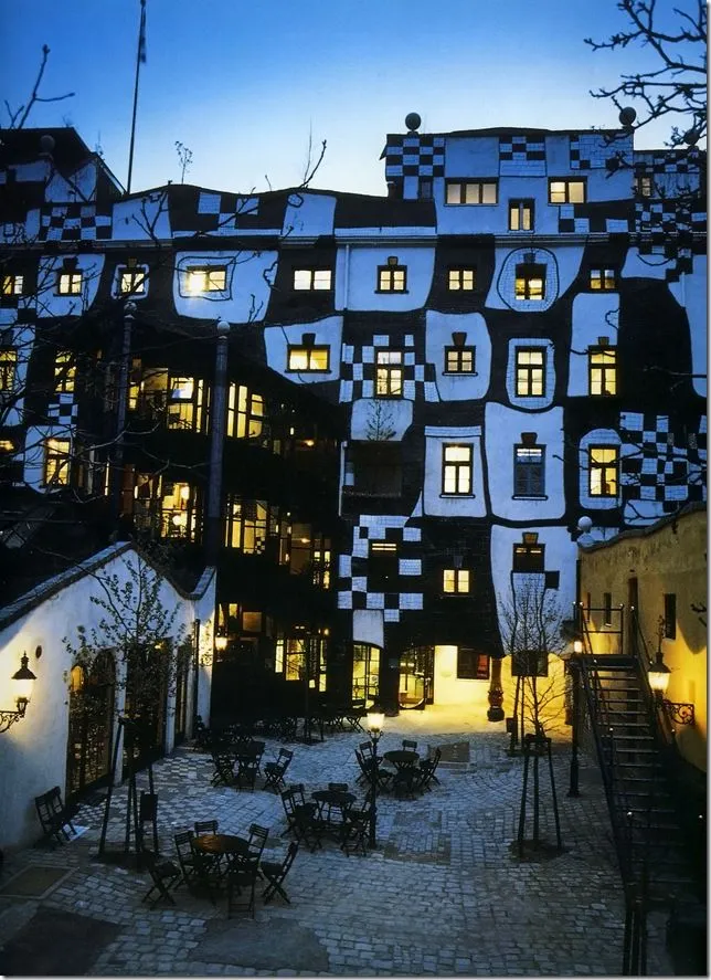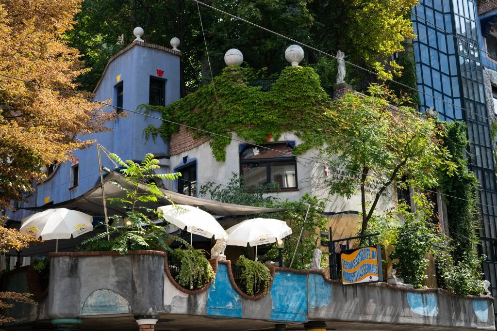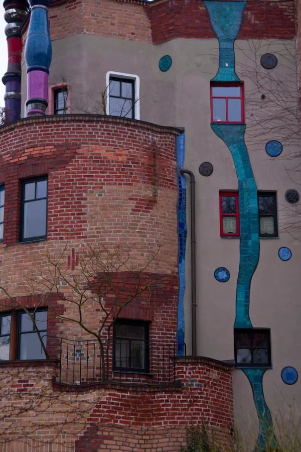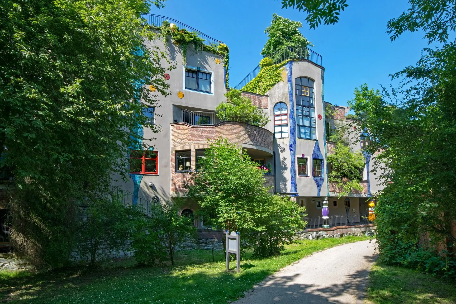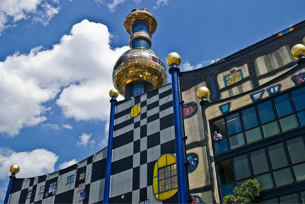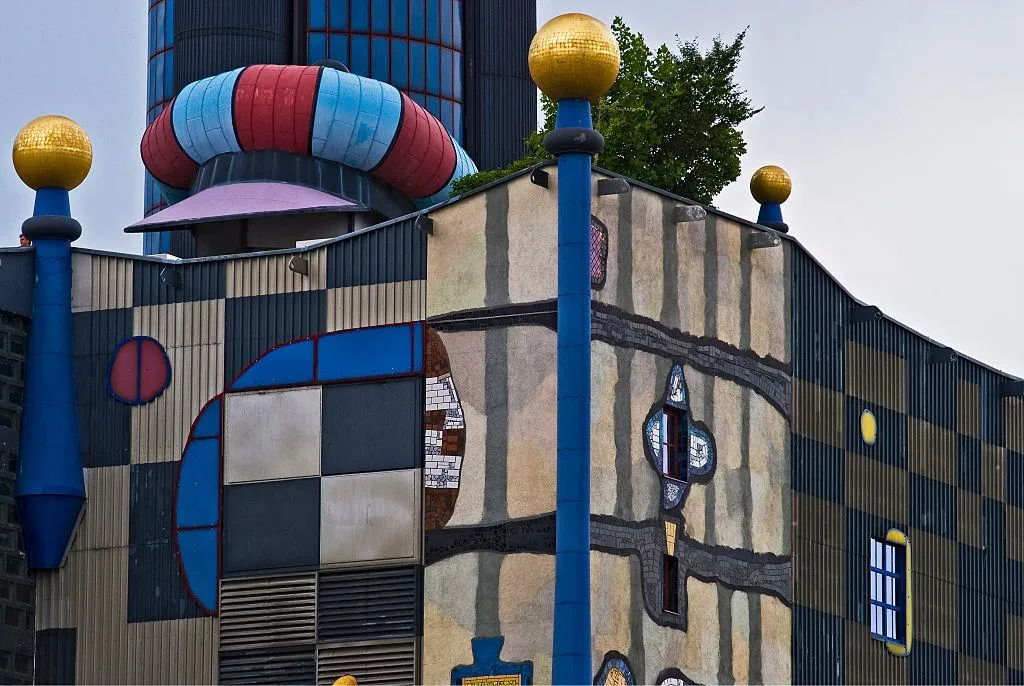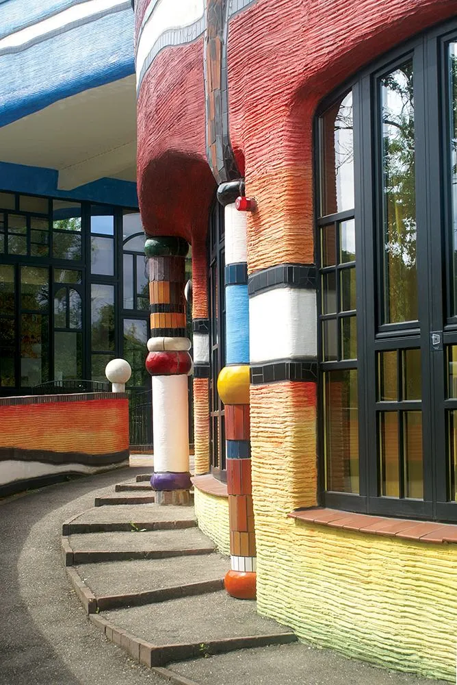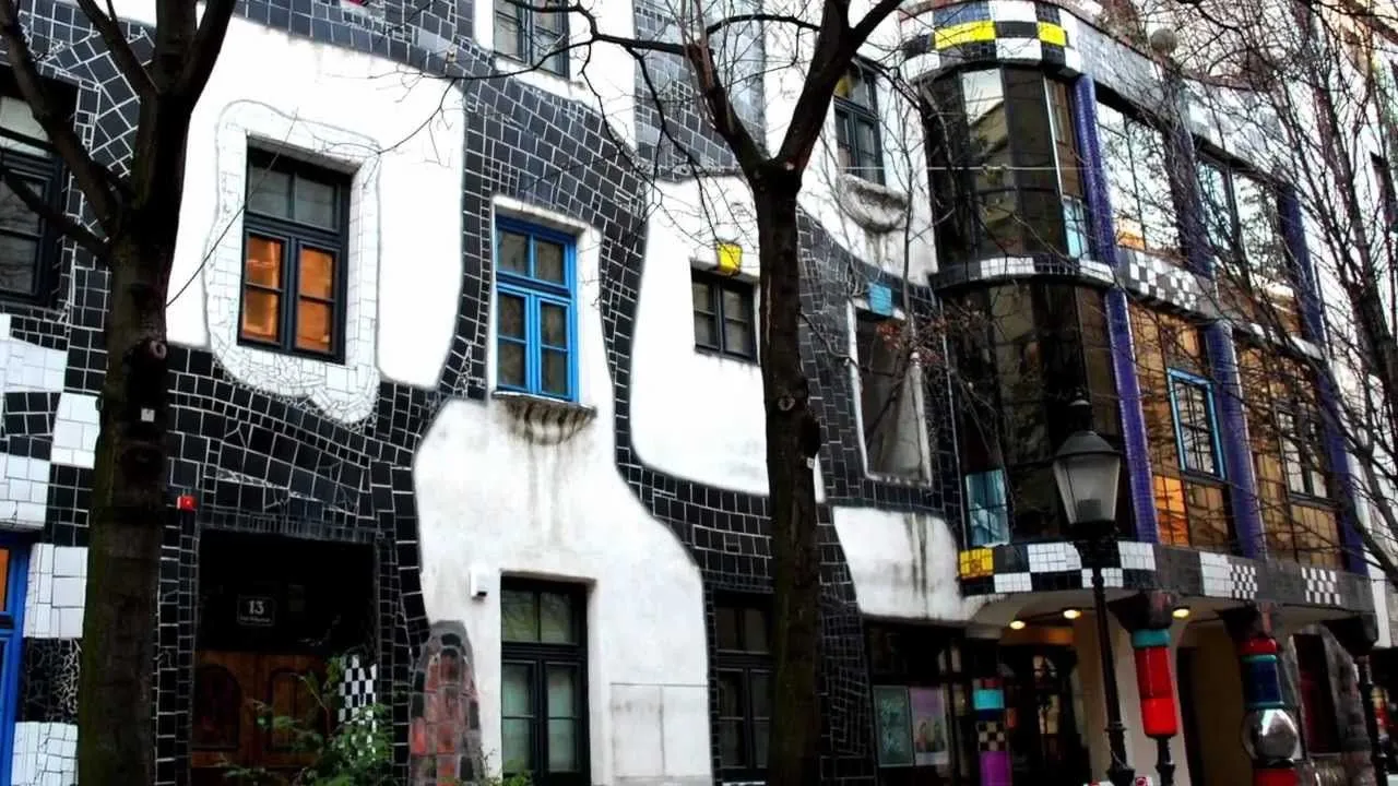 Соковиті будівлі виблискують кольорами, битою керамічною плиткою і підморгують численними вигадливими вікнами. До слова, саме вікна були для Хундетвассера основою будівлі.