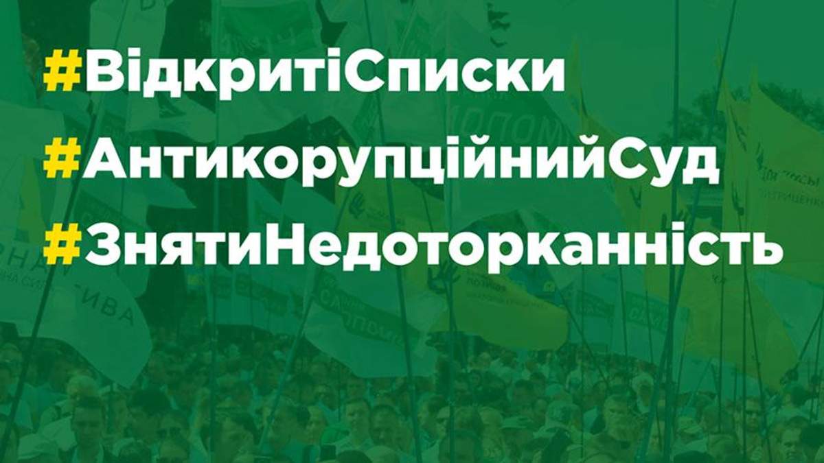 "Ми вирішили приєднається до ініціативи громадських активістів і зібратися в Києві 17 жовтня з трьома вимогами: створення антикорупційних судів, скасування депутатської недоторканності, прийняття нового виборчого закону. А решту вимог ми будемо збирати по всій Україні до 17 числа", – зазначив політик.