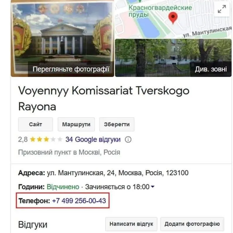 Однак тих, хто спокуситься звернутися за цим номером, чекає зовсім не допомога. Річ у тому, що справжнім автором листівки є військовий комісаріат Тверського району.