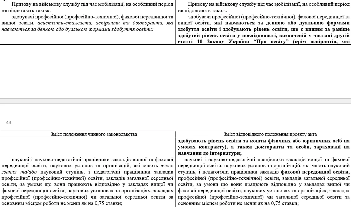Нова редакція документа передбачає, що мобілізації в особливий період не підлягають здобувачі:
