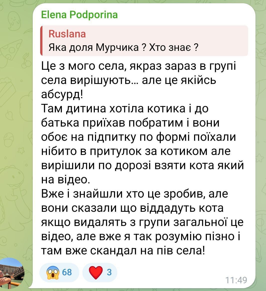 Зазначається, що викрадачі відмовляються повертати Мурчика власникам, поки з групи мешканців села не видалять вже відоме відео, бо "скандал на пів села".