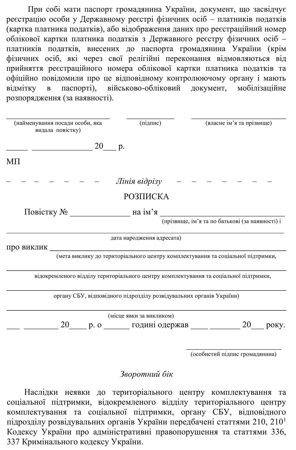 Кожна повістка буде засвідчена особистим підписом керівника територіального центру комплектування та соціальної підтримки (ТЦК та СП) та скріплена гербовою печаткою.