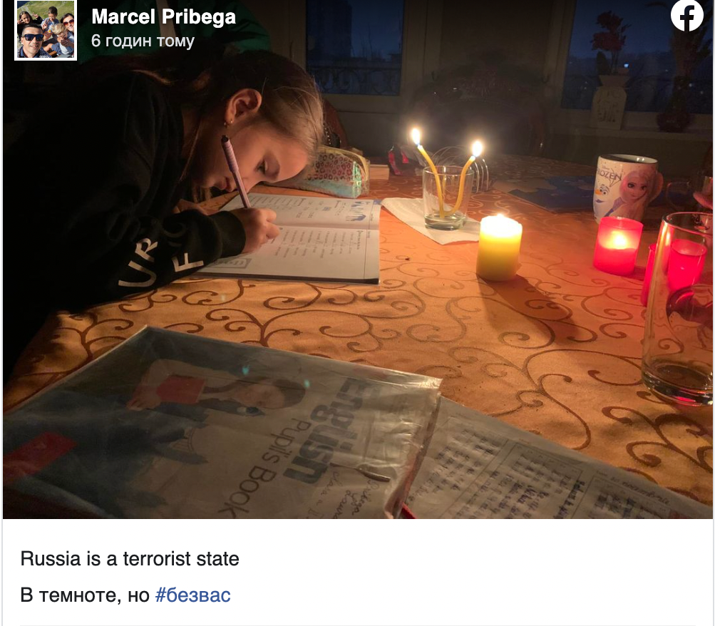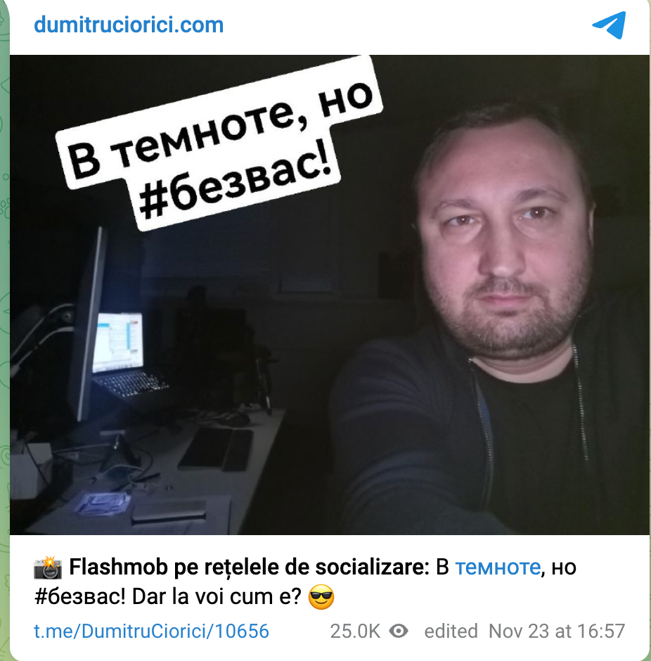 У соціальних мережах мешканці Молдови публікують фото при свічках, банери "Росія – держава-терористка" та світлини в темноті. До всіх дописів люди додають напис "У темноті, але без вас".