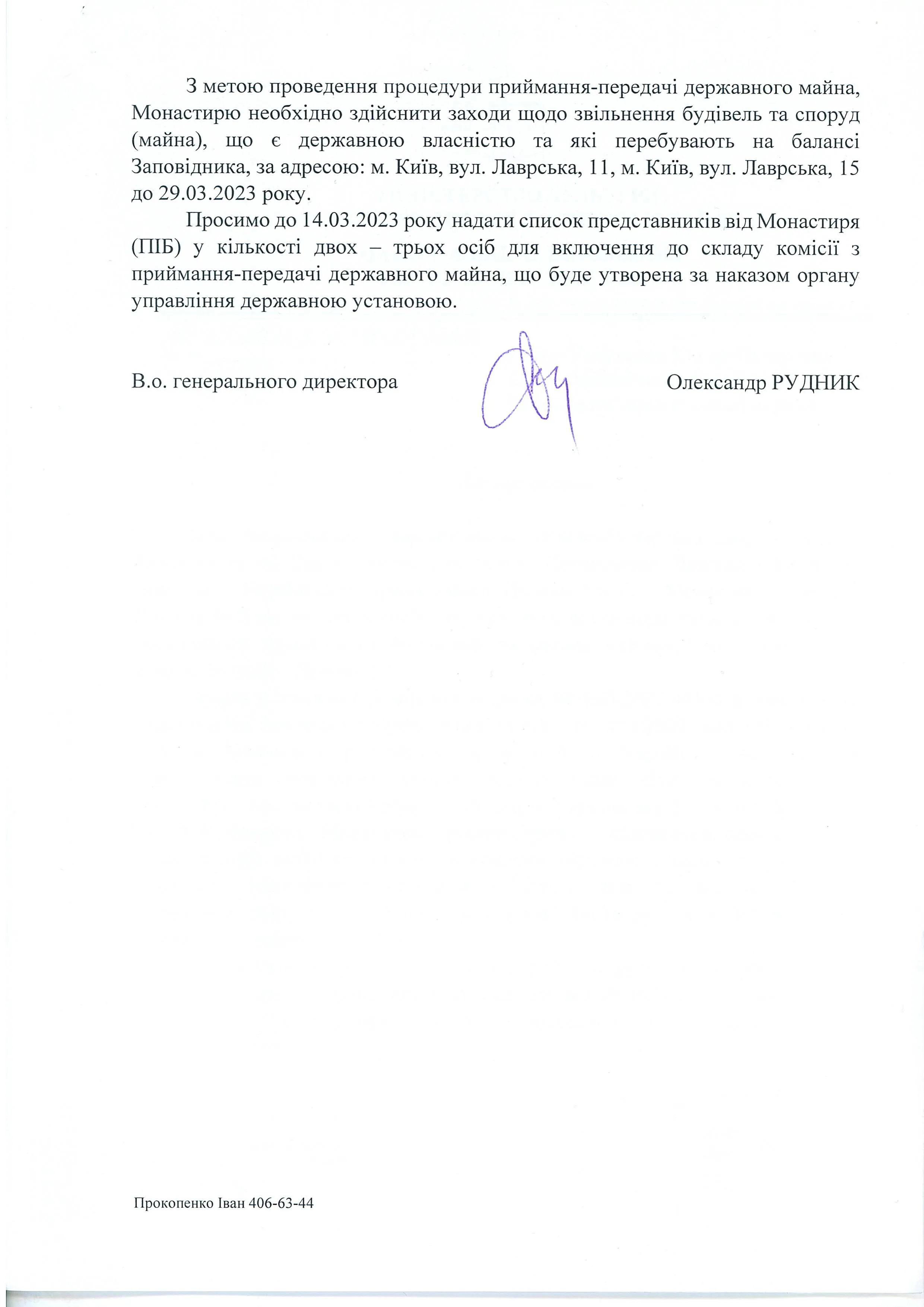 З огляду на висновки Міжвідомчої робочої групи та листа Міністерства культури та інформаційної політики України, Заповідник попереджає про розірвання Договору з 29 березня 2023 року,