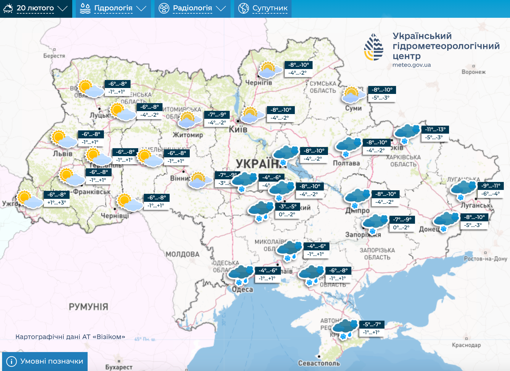У четвер, 20 лютого, попередньо, без опадів лише в західних і північних областях. І хоча навіть на Сході морози можуть також ослабнути, різкого потепління ще, ймовірно не буде. Найпрохолодніше у Харківській області, – вночі до -13 градусів.