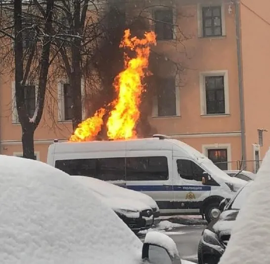 Автомобіль поліції загорівся у Тверському районі Москви, повідомили в екстрених службах. Трапився інцидент поблизу будинку у Вознесенському провулку, 20.